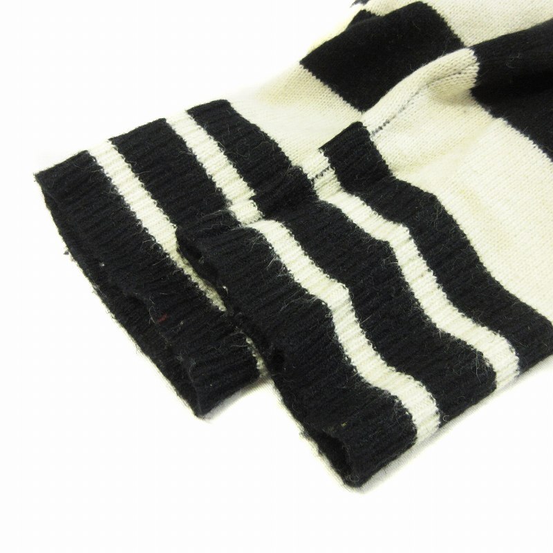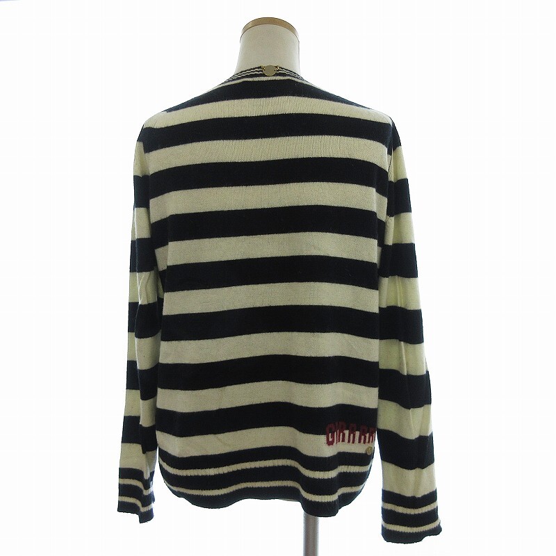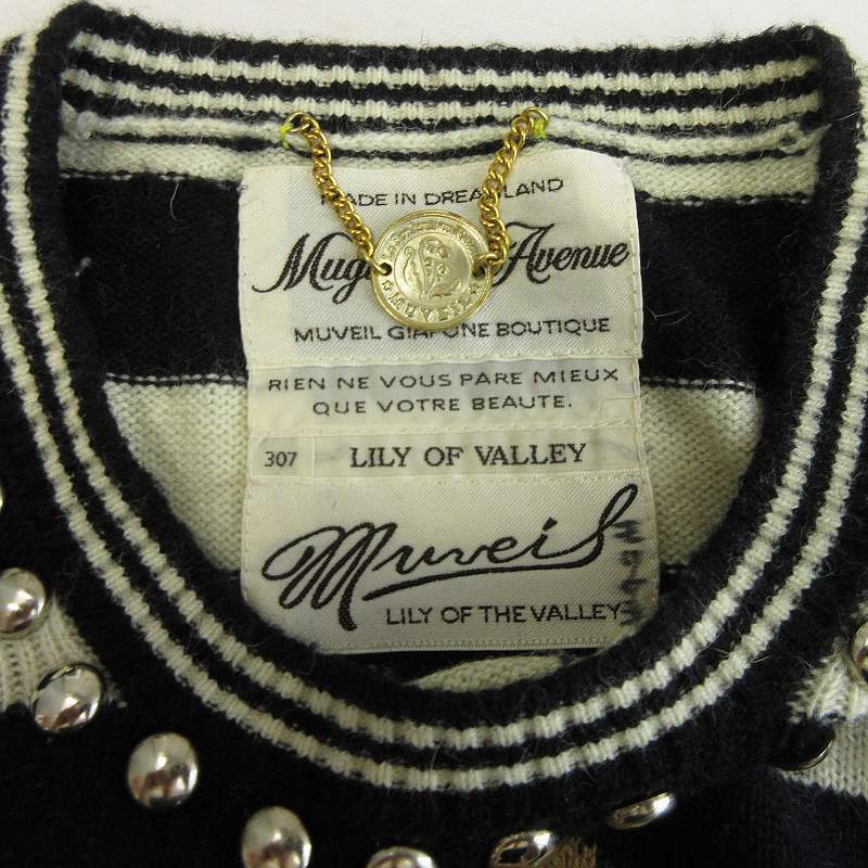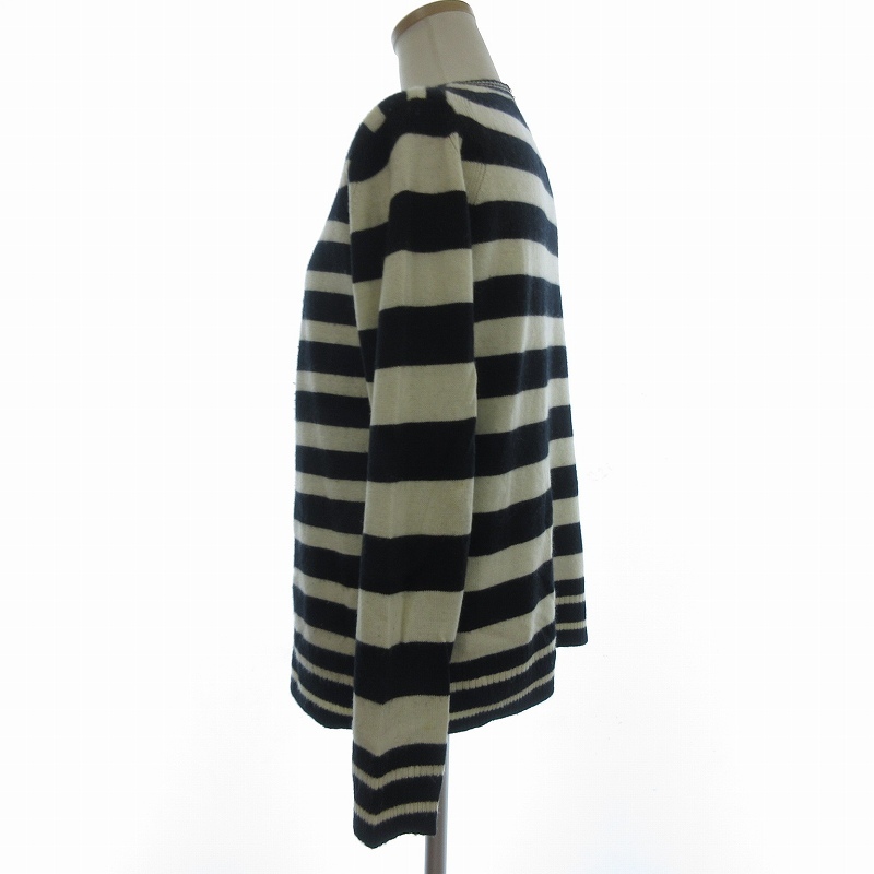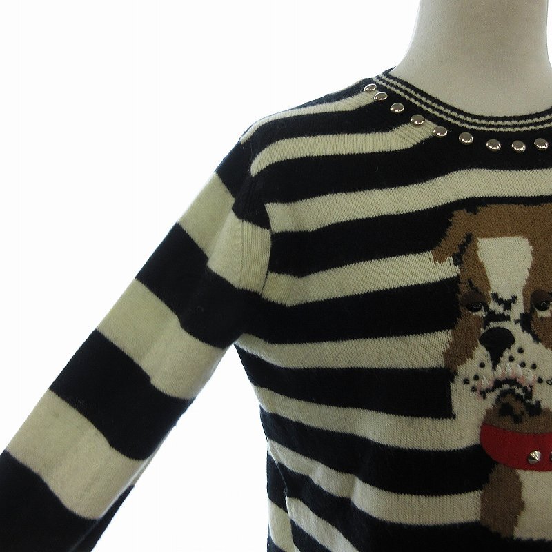 ミュベール muveil ニット セーター 長袖 ボーダー クルーネック ブルドック柄 スタッズ 38 白 ホワイト 黒 ブラック レディース