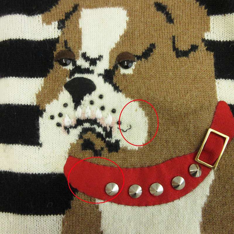 【状態】この商品には下記のようなダメージがあります。 ・全体的な毛玉や毛羽立ち感 ・スタッズやビーズが取れている(画像7) ・袖に小さなシミ(画像8) ※全体的に中古品としての使用感と上記のようなダメージがありますが、通常使用には支障のない商品です。掲載写真や記載内容をご確認いただき、ご理解の上ご購入ください。