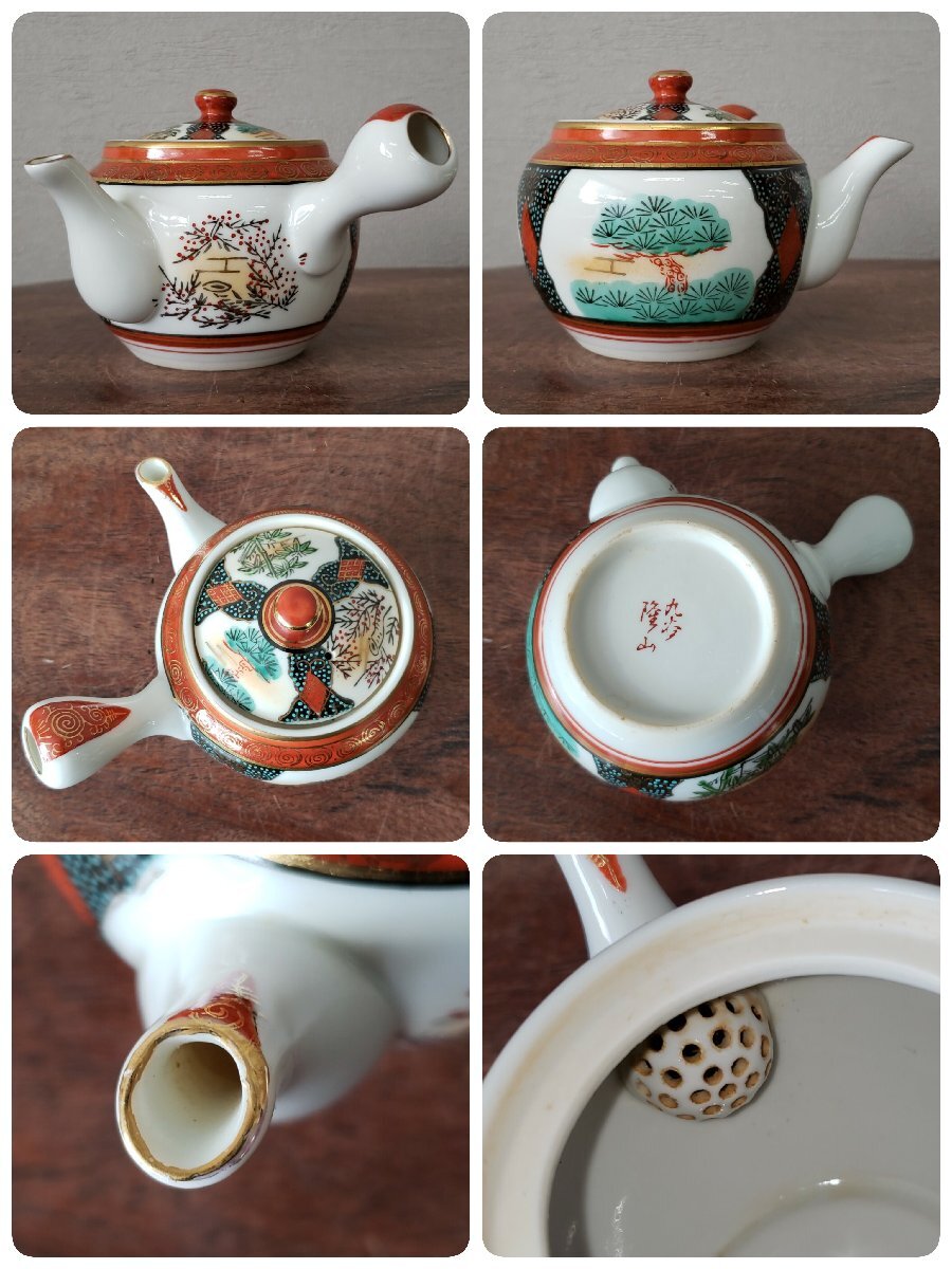 商品名 | 九谷焼 茶器セット 九谷隆山 隆山作 青粒 赤絵金彩 松竹梅 青粒鉄仙 急須 湯呑み 湯冷まし ※箱無 茶器 煎茶道具 | |||||||||||||||||||||||||