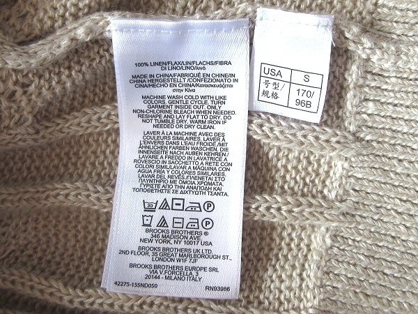 Brooks Brothers ブルックスブラザーズ イタリア製糸使用 リネンニット ケーブルニット サマーセーター S オートミール 国内正規品