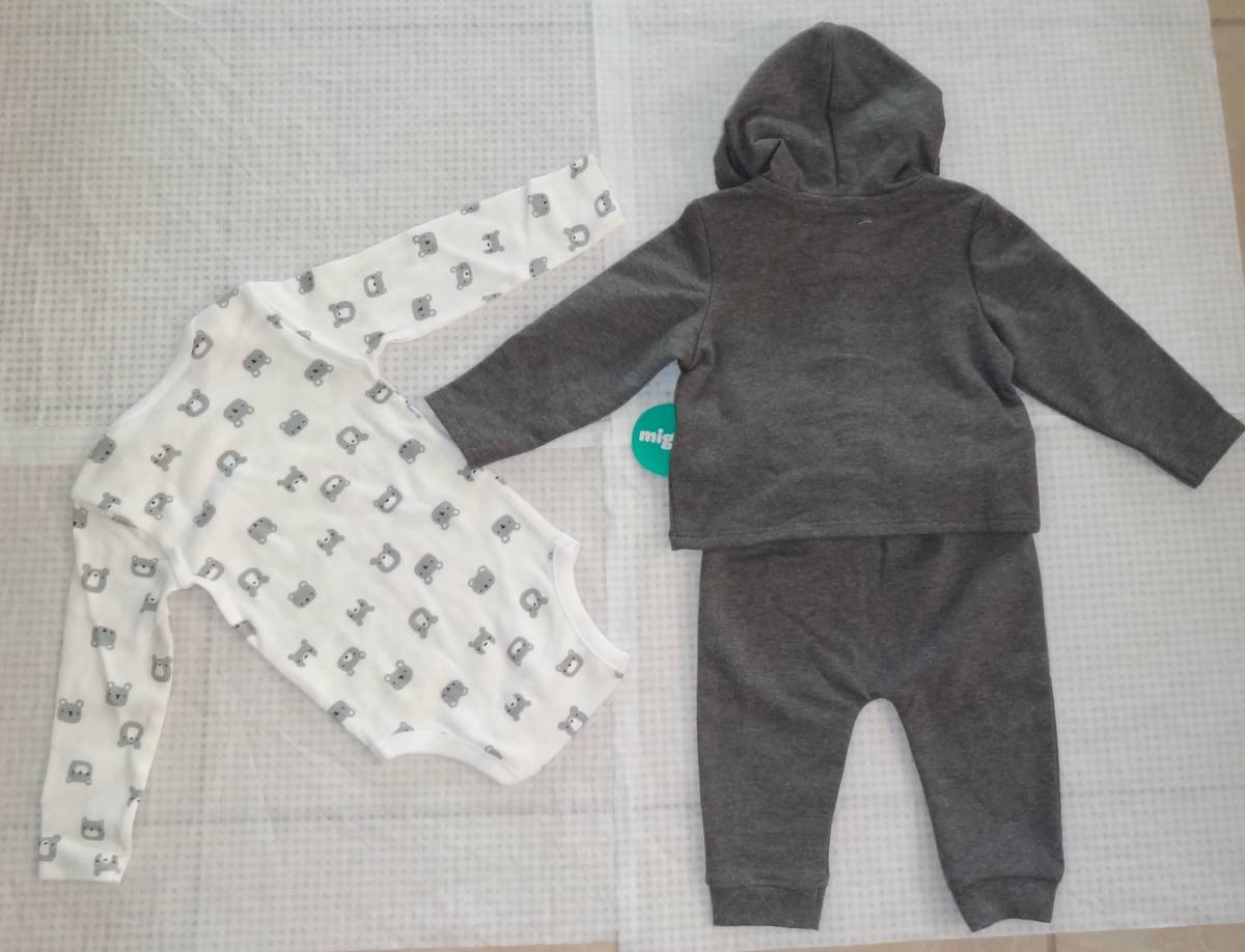 ☆彡新品未使用:アメリカで購入した男の子用3点セットです。フーディは前ボタンで、裏は起毛。トップスは股下ホック。ボトムスはウエストゴムで、裏は起毛。