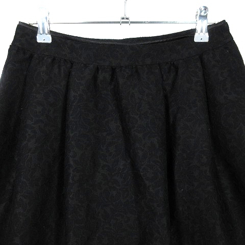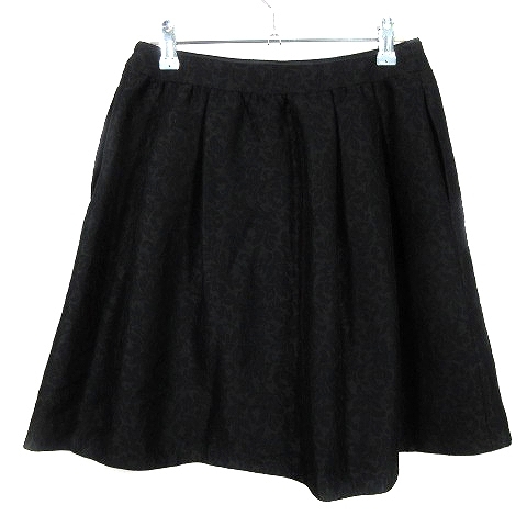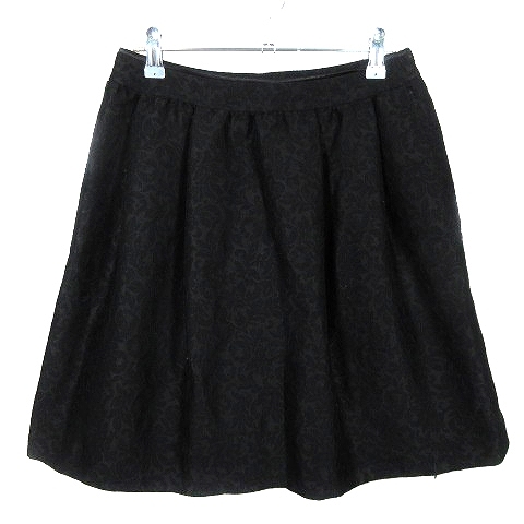 ロペ ROPE スカート フレア ミニ サイドファスナー ウール 花柄 38 黒 ブラック ボトムス /T2 レディース