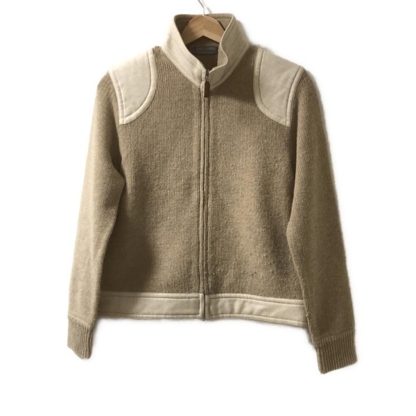 ニューヨーカー NEW YORKER ブルゾン サイズM - ベージュ×アイボリー レディース 長袖/ニット/ジップアップ/秋/冬 ジャケット