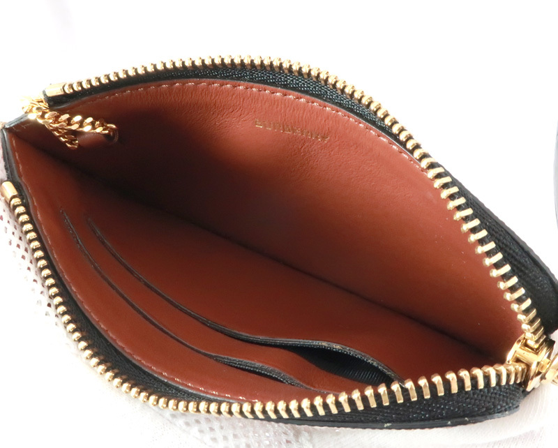 □商品説明・状態 ・ バーバリー チェーン付きコインケース 未使用品です。特筆すべきダメージはありませんが、保管によると思われる内側カードポケットにたわみが見られます、