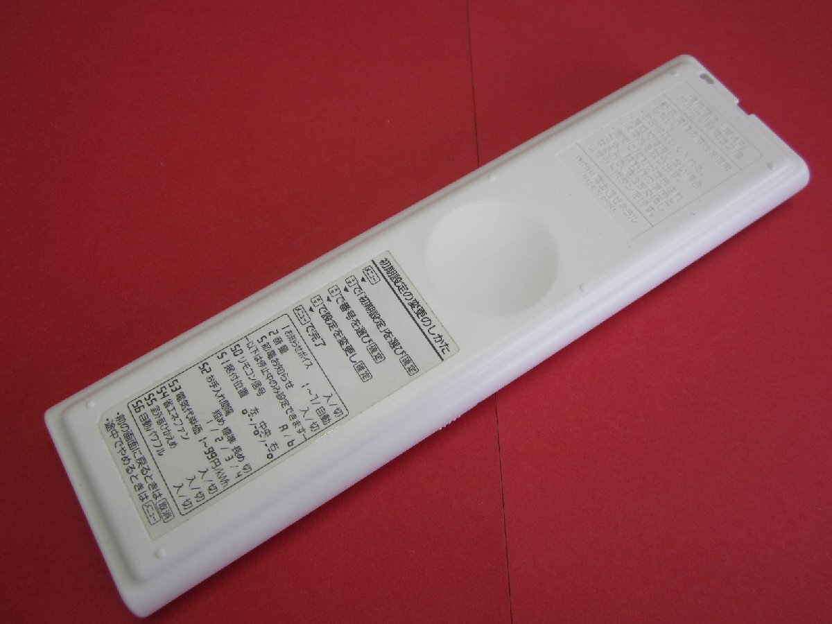 ☆中古リモコンを全ボタンチェックしてお届け! ☆アルカリイオン水で清掃、除菌、抗菌、消臭処理済! ■商品の状態 (キズ 汚れ 動作等)■ ・中古品である事をご理解下さい。 ★洗浄用のアルカリイオン水でクリーニングしていますが中古品ですので使用による 落としきれない汚れや傷,また経年に依る焼け,さび等有る場合もありますが、後は画像にてご判断下さい。 ※電池は付属しておりません。 ■動作確認 ・出品時と出荷時の2回、1台ずつ全ボタン赤外線発信動作および 液晶表示の確認しています。 (実機での動作確認はしておりません) ■動作保証 ・万が一動作に不具合があった場合、返金保証致します (到着7日以内にご連絡下さい) ■クリーニング済 ・1台ずつ、除菌、抗菌, 消臭、防錆のできるアルカリイオン水の洗浄剤で、 クリーニングし出品、お届け後、即ご使用できますよ。 ※対応機種の質問はお答えできませんメーカーHP等でご確認下さい |