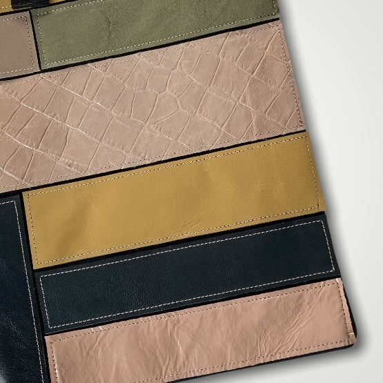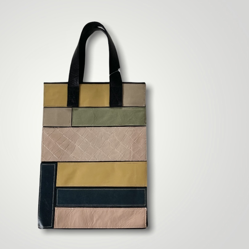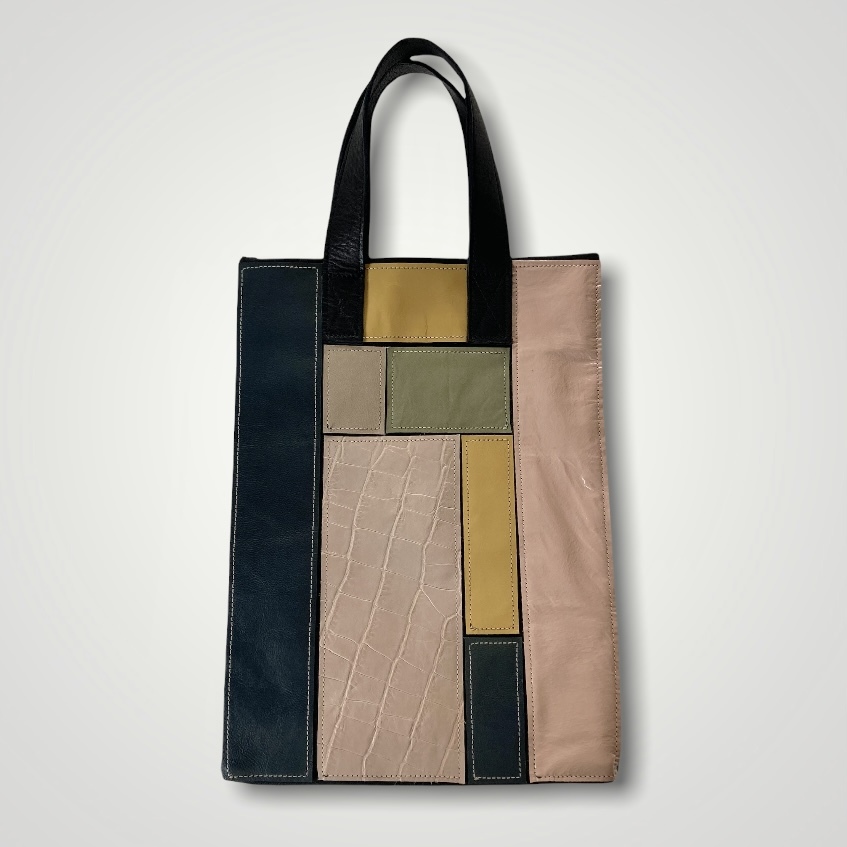 ハンドメイド パッチワークレザー トートバッグ/マルチカラー/革/1点もの