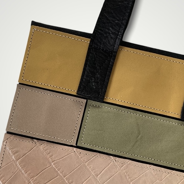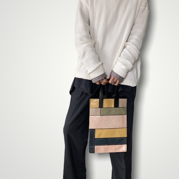 aquet shopのオリジナルブランド「ZOZOTTE」のパッチワークレザートートバッグ。