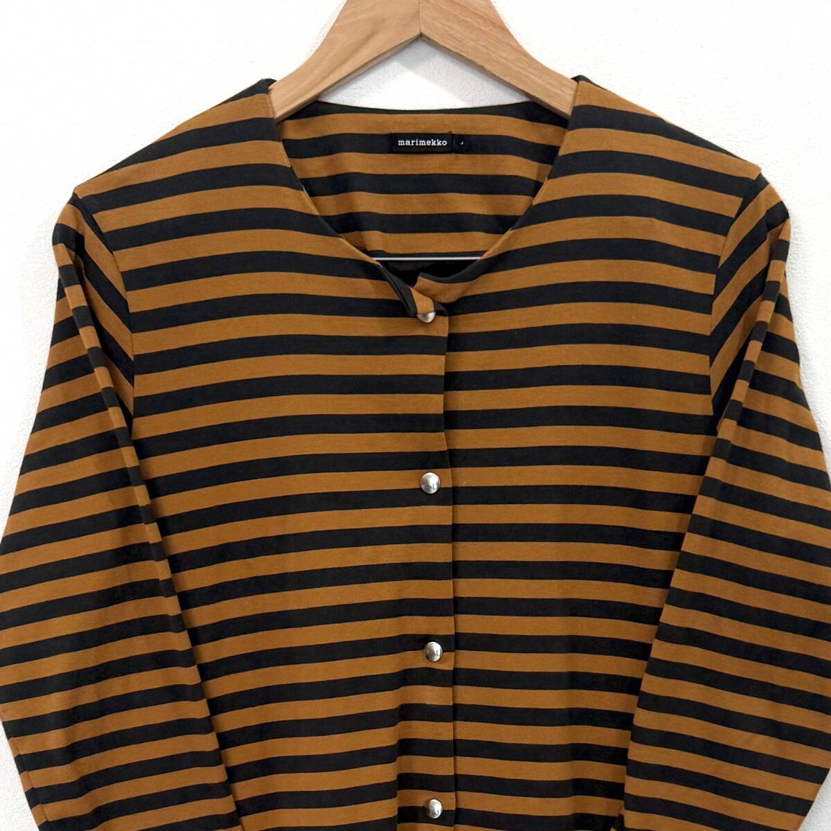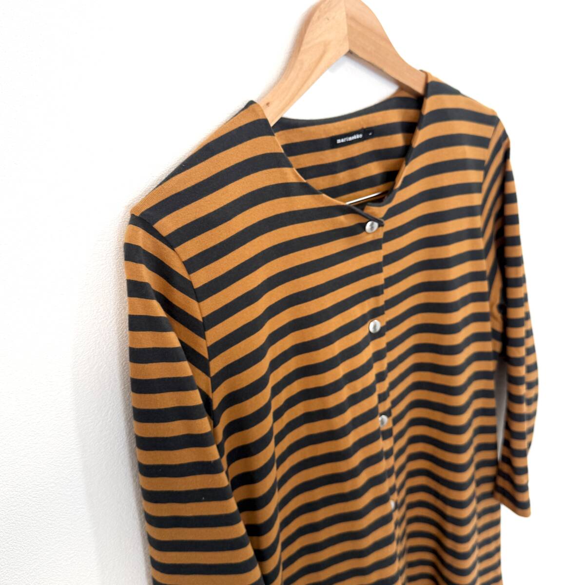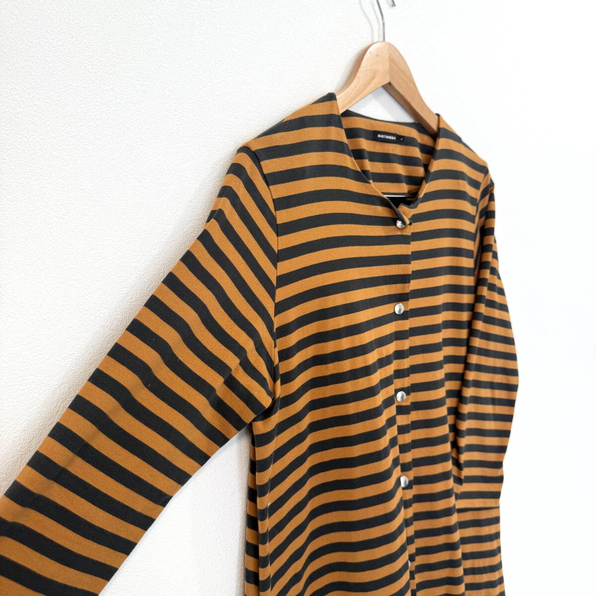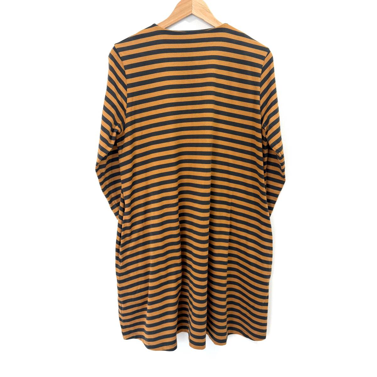 f2912ii marimekko(マリメッコ)サイズL ボーダーワンピース 長袖 前開き クルーネック オレンジ×グリーン系 レディース コットン100%