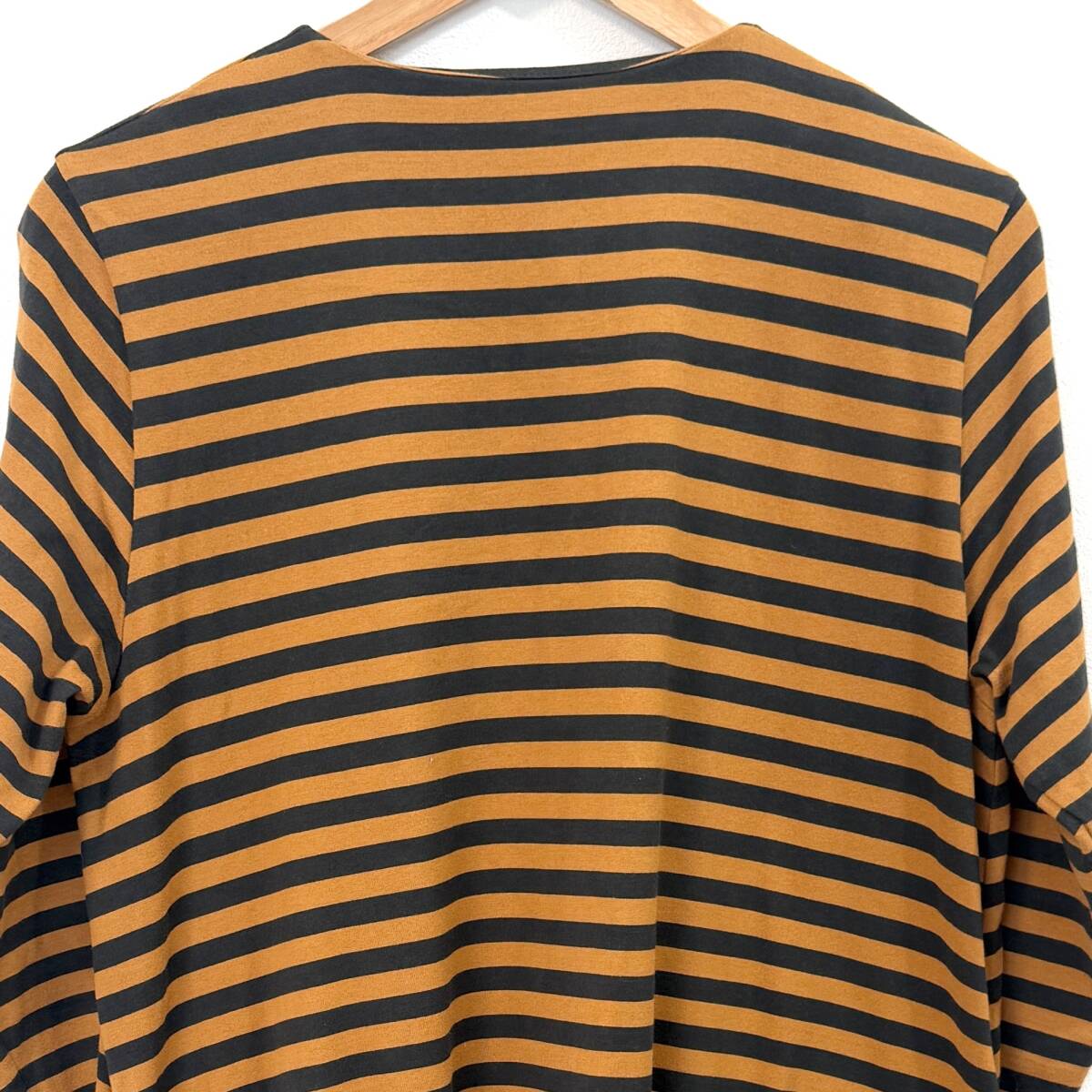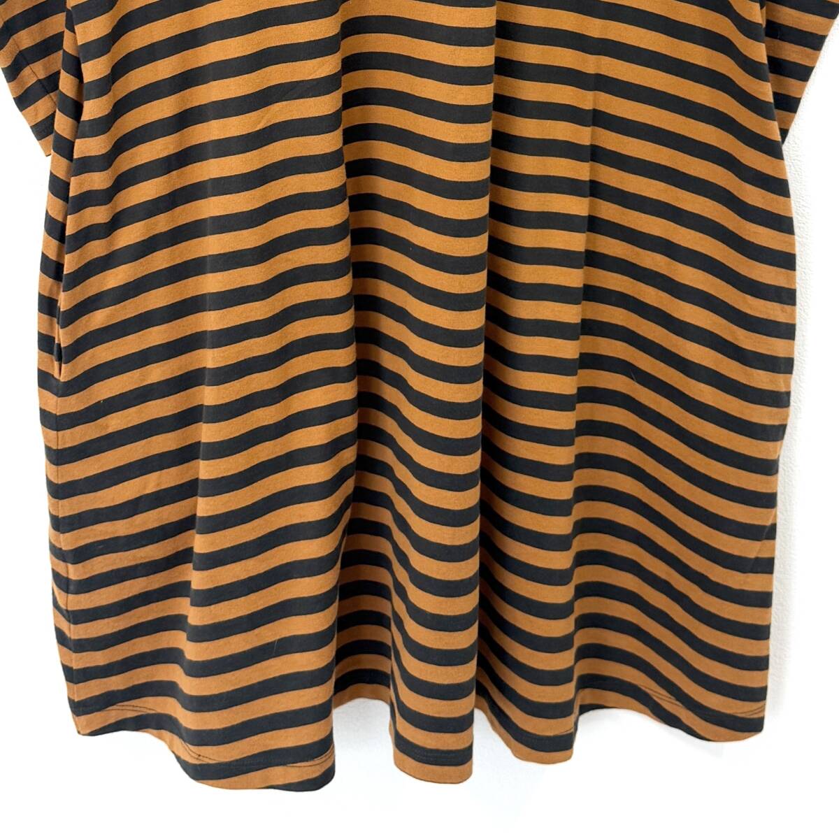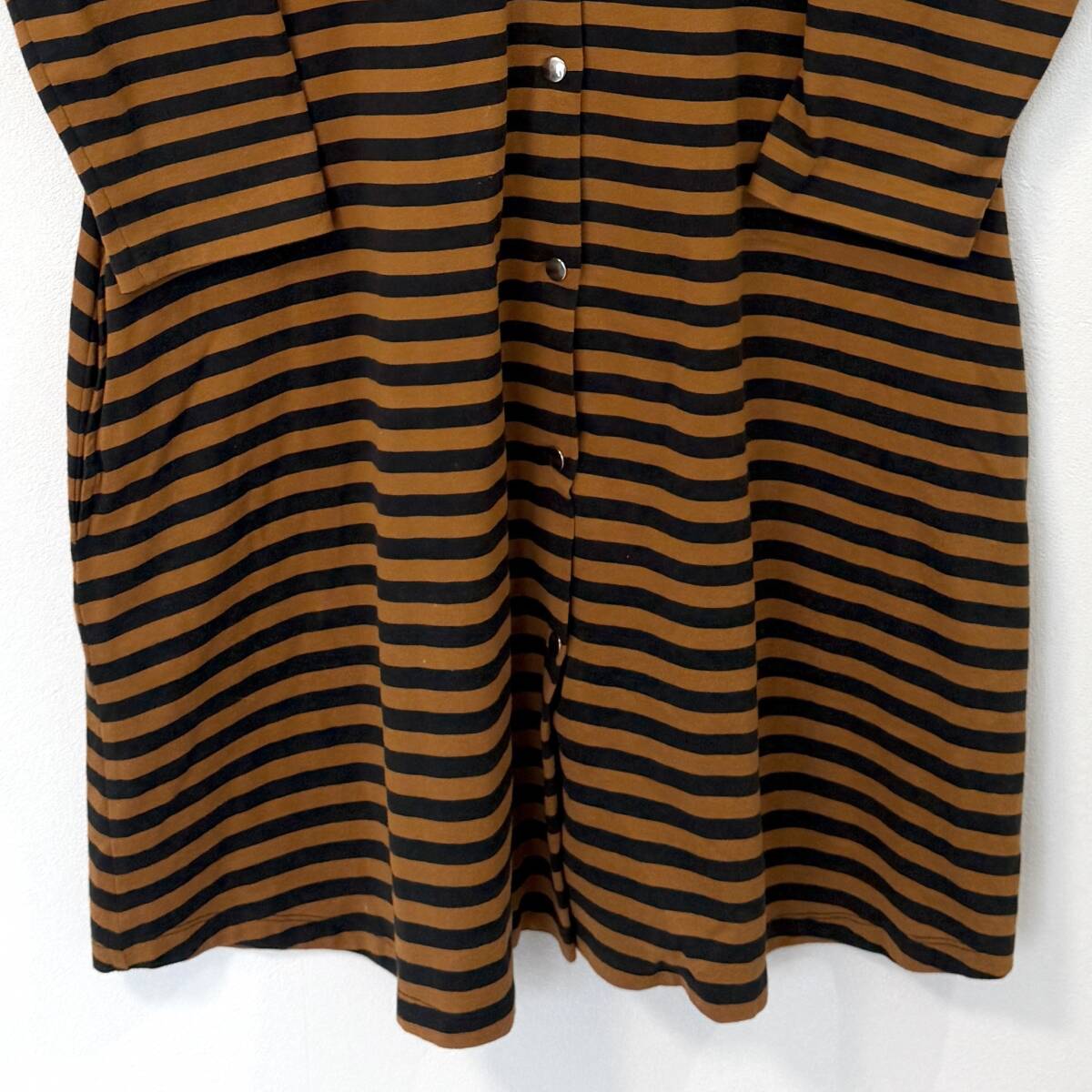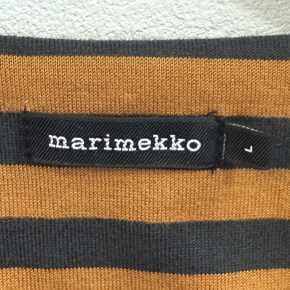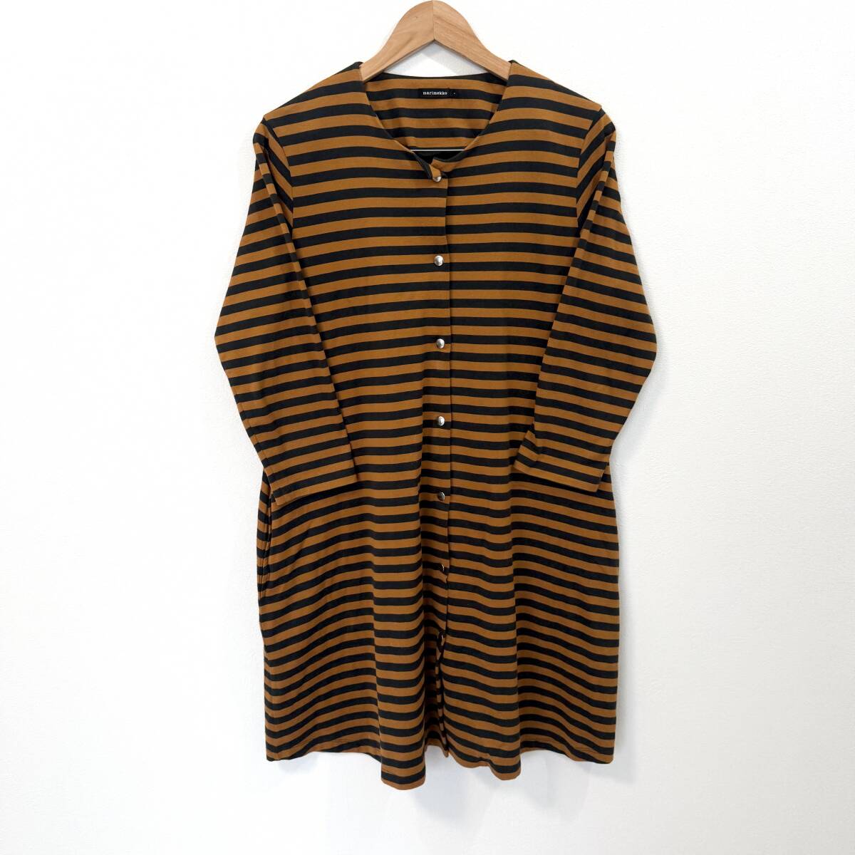 f2912ii marimekko(マリメッコ)サイズL ボーダーワンピース 長袖 前開き クルーネック オレンジ×グリーン系 レディース コットン100%