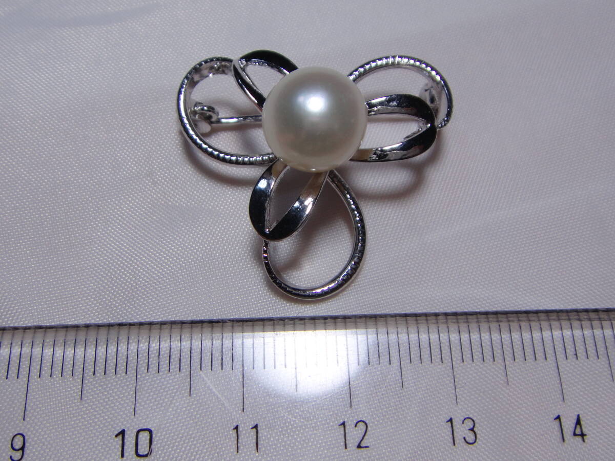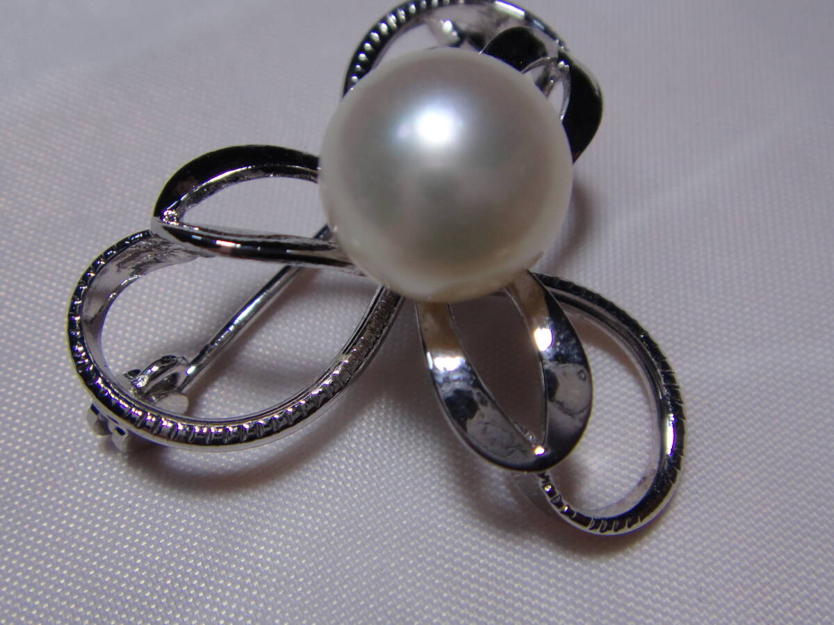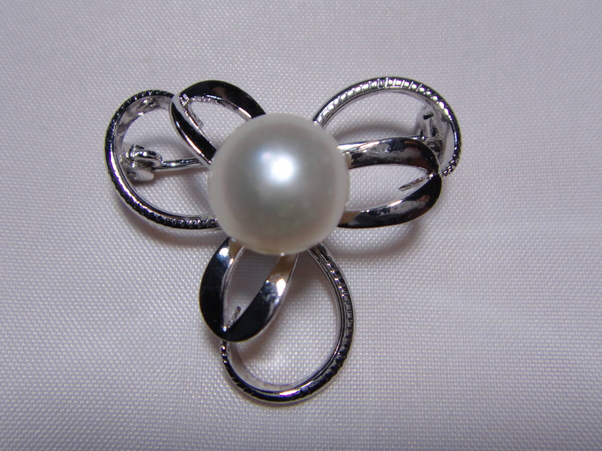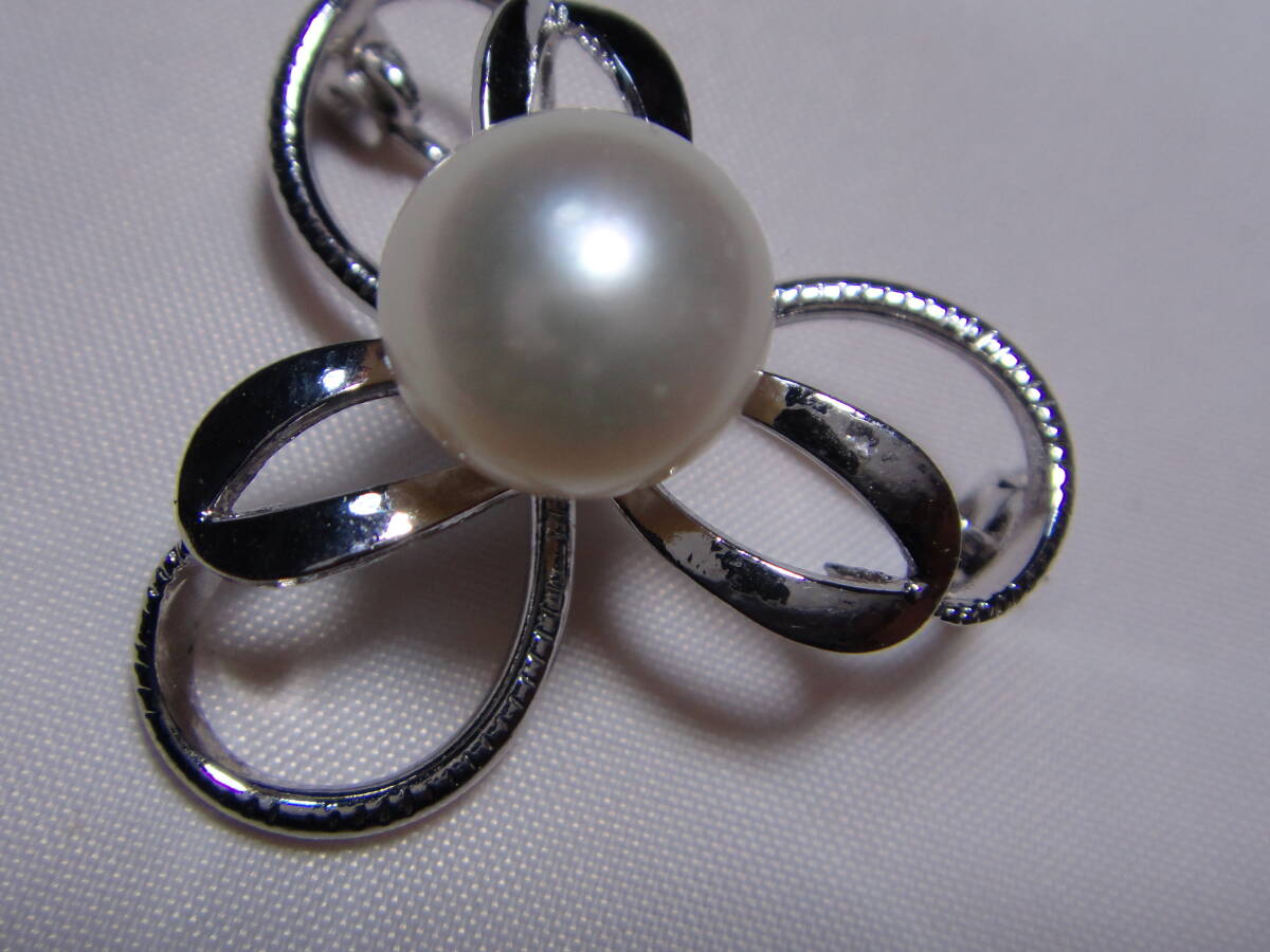 本真珠 本パール ツヤテリ良 ブローチ 大玉! 約9.8㎜ SILVER刻印 ヴィンテージ D393
