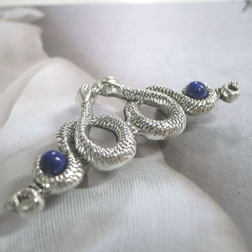 2匹の蛇&ラピスラズリの帯留め