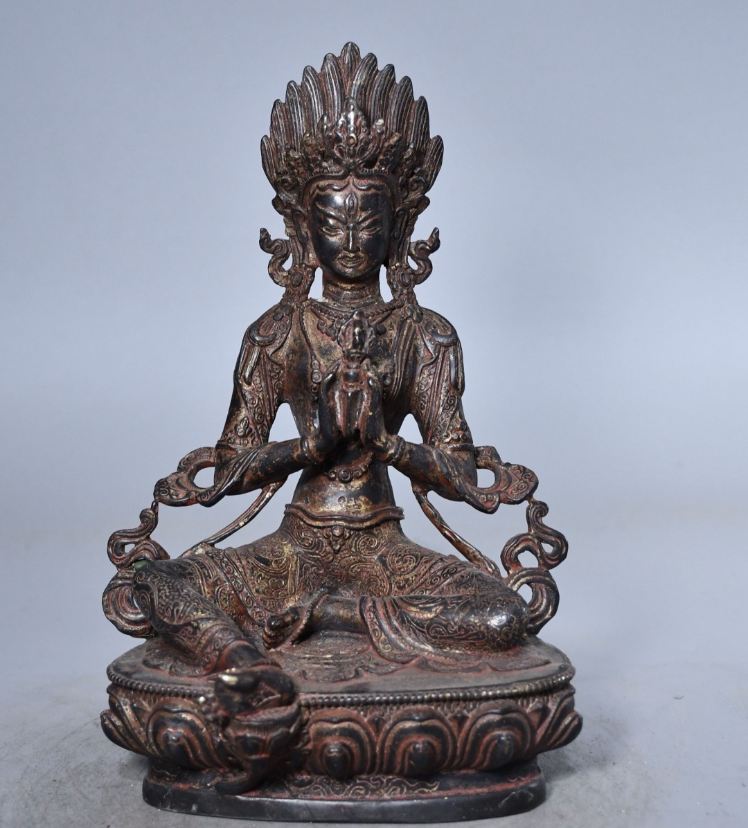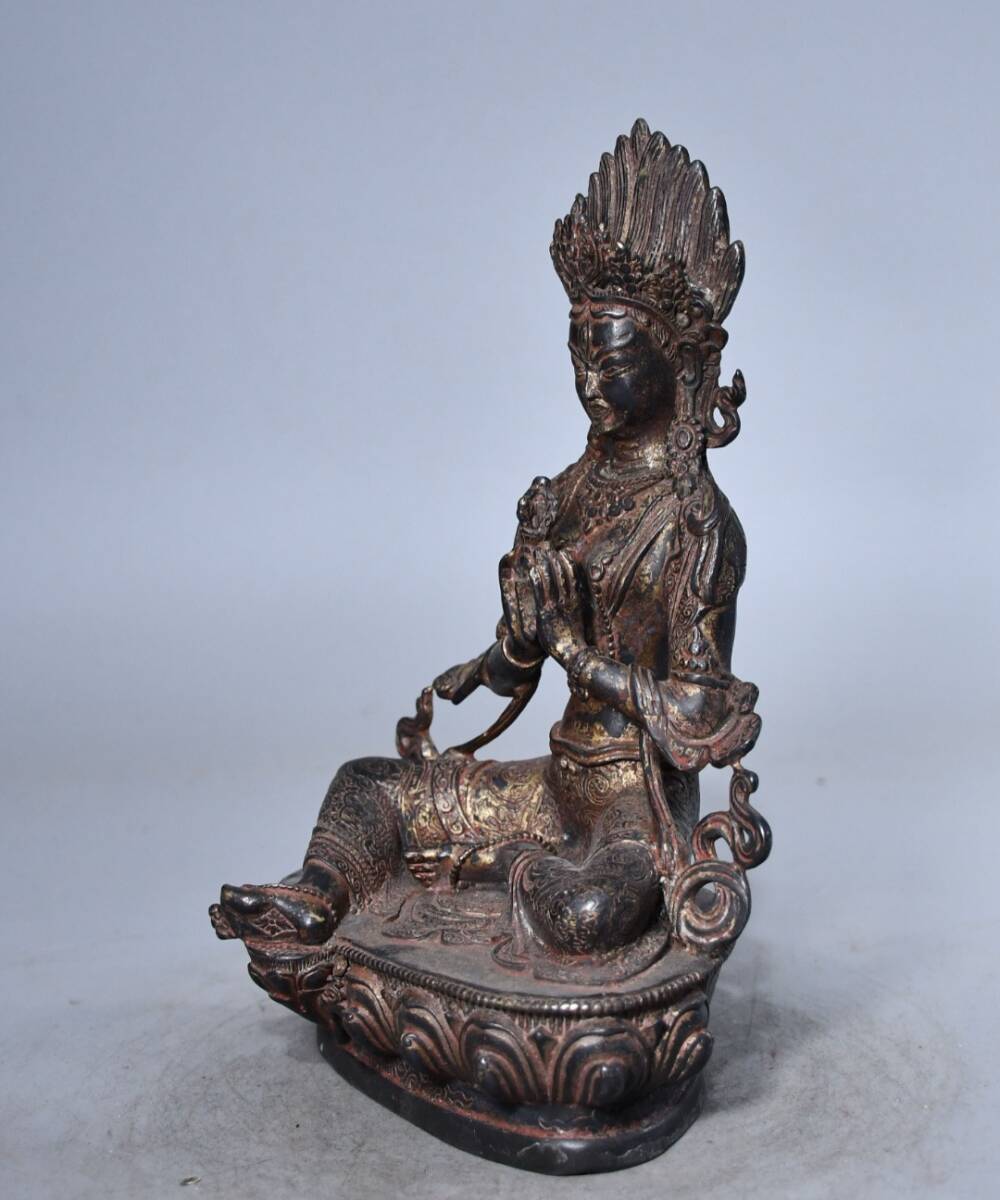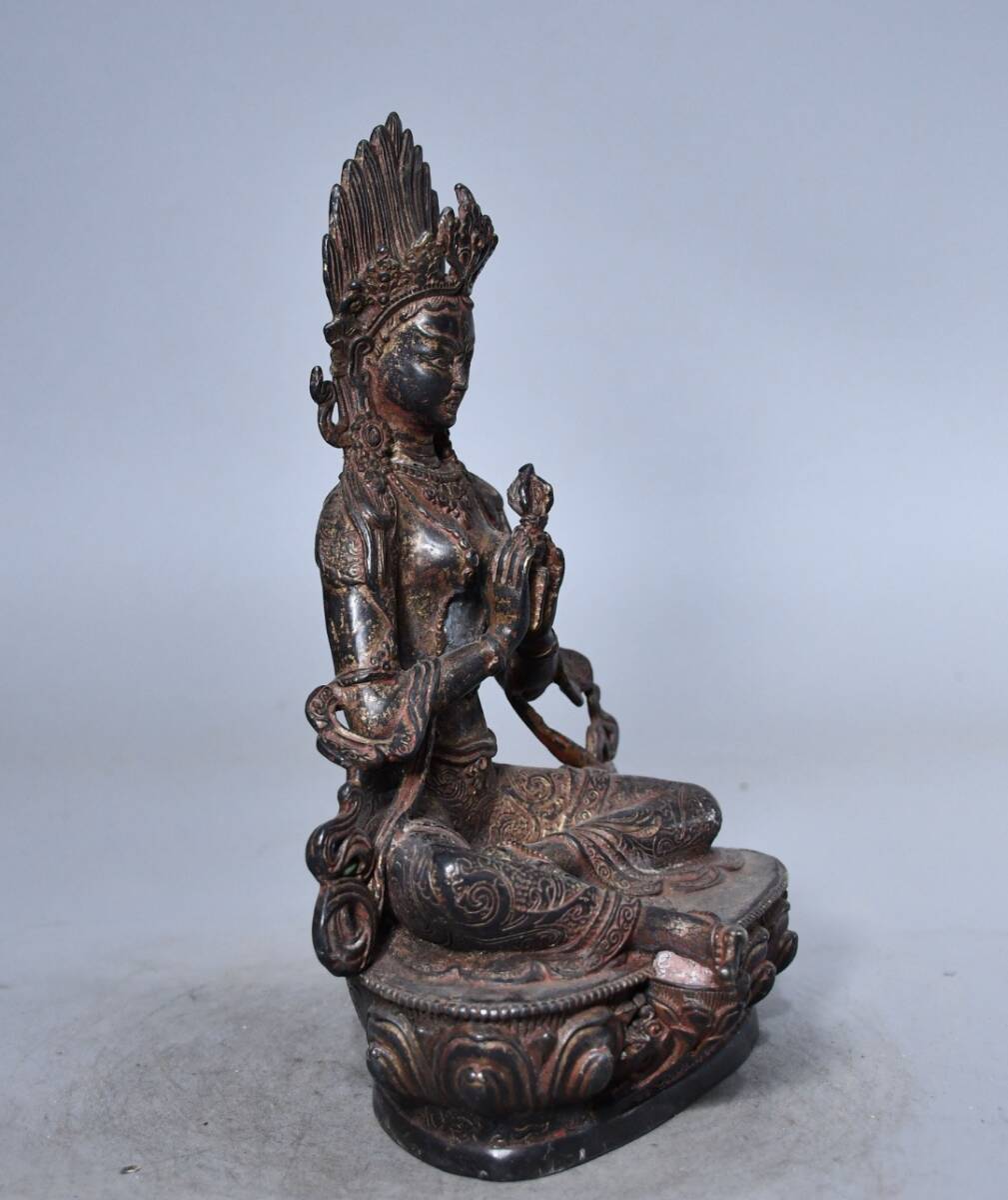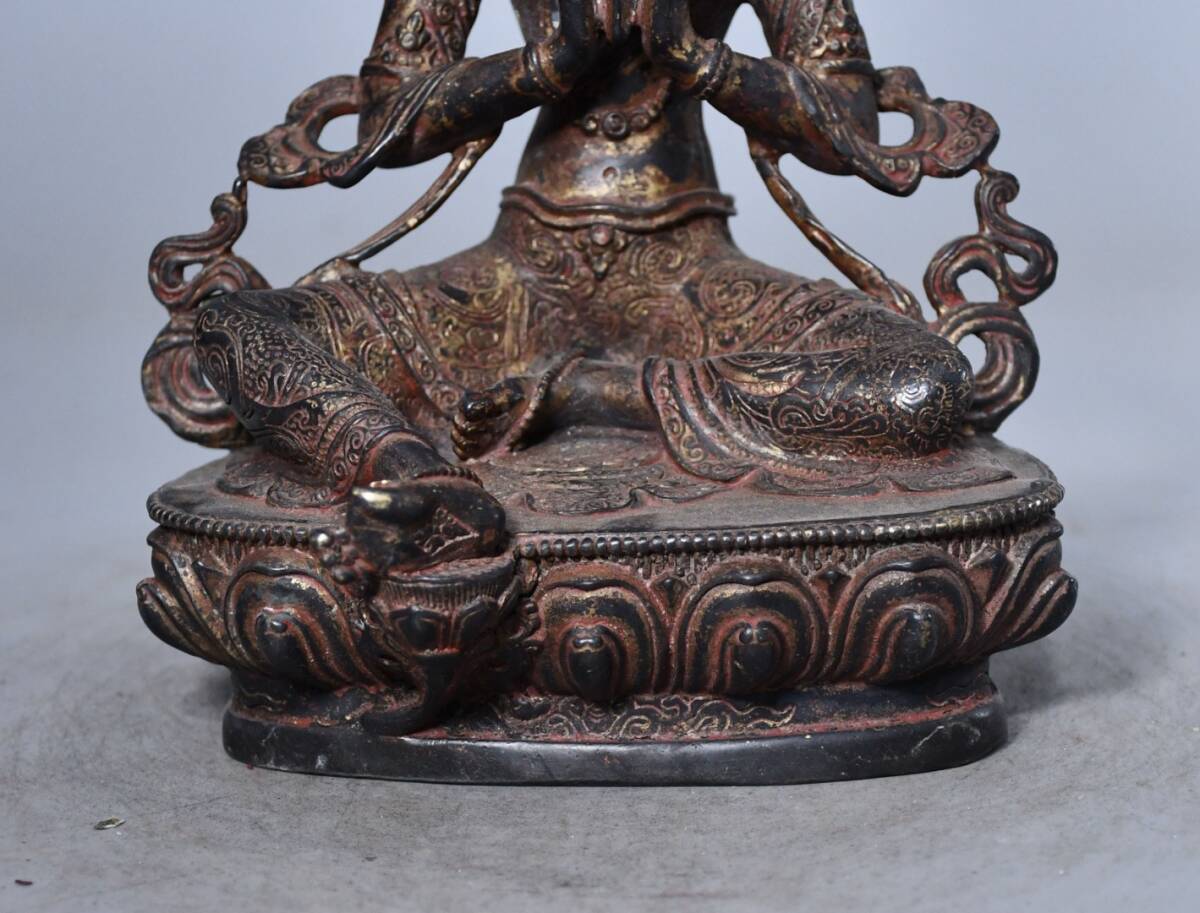 *珍品旧蔵* 清 黄銅 朱砂 度母觀音 胎體厚重 仏像 銅製 極細工 中国古玩 仏教古美術 供養品 H45
