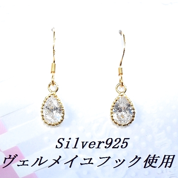 高品質ドロップキュービックジルコニア(CZ)を使った 可愛いピアス