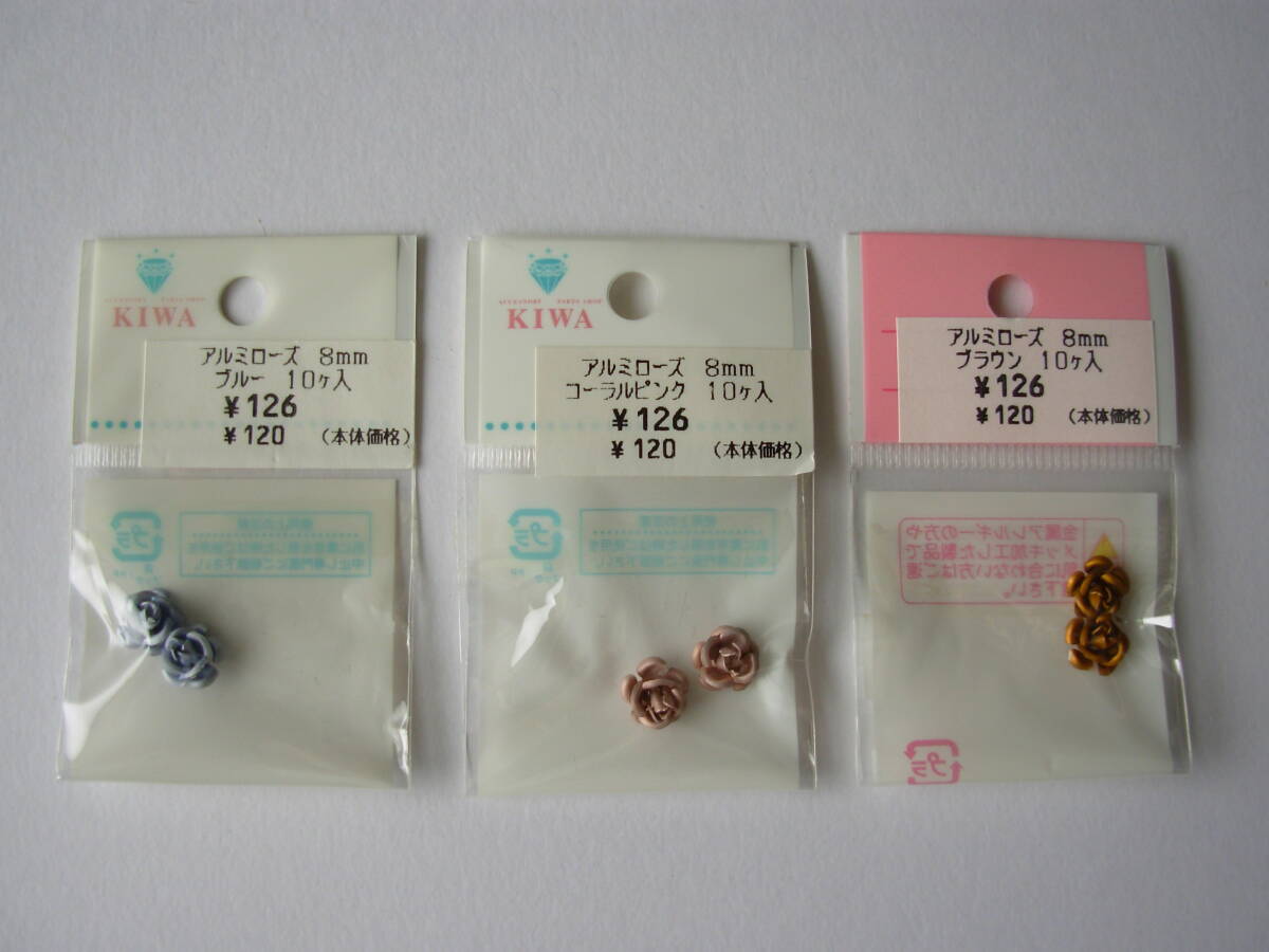 ◆ アルミ ローズ 8mmブルー・コーラルピンク・ブラウン 各2個 未使用 ◆![]() | |