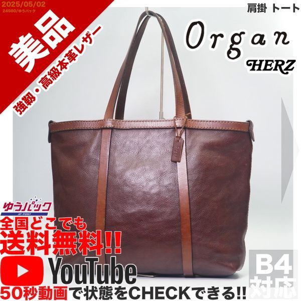 送料無料 即決 YouTube動画アリ 定価50000円 美品 オルガン Organ ヘルツ HERZ 肩掛 トート 牛革 レザー バッグ
