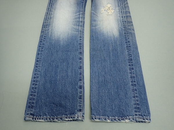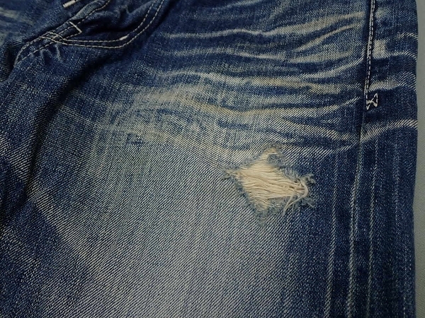 こちらの商品は中古品です。使用感があります。 ユーズド加工で腿やひざなどに破れ、ポケット口や裾に擦り切れ、腿周りに薄汚れがあります。 | |