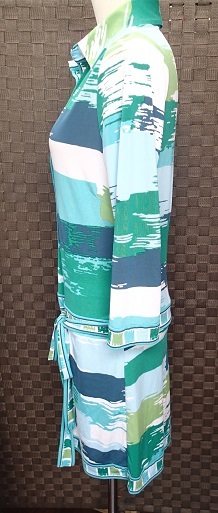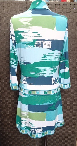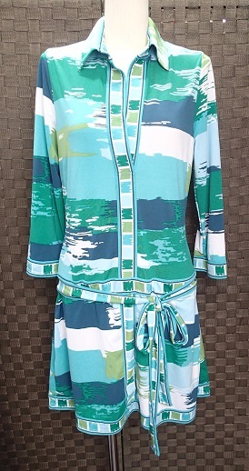 ☆BCBG MAXAZRIA ビーシービージーマックスアズリア/ペイント模様柄 デザインチュニック/ブルー×グリーン系/サイズS