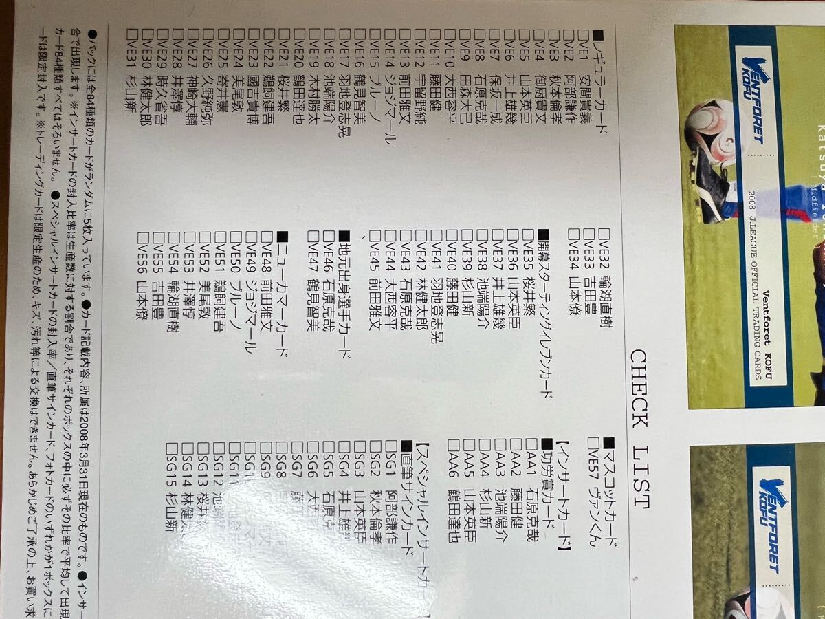 2008 ヴァンフォーレ甲府 未開封 20パック サッカー Jリーグ