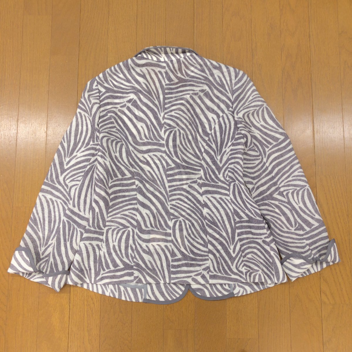 美品 SYPER NOVA シャペルノーヴァ 麻 リネン混 メッシュ パイピングジャケット 40(L) ゼブラ柄 グレー系 羽織り アニマル柄 日本製 婦人
