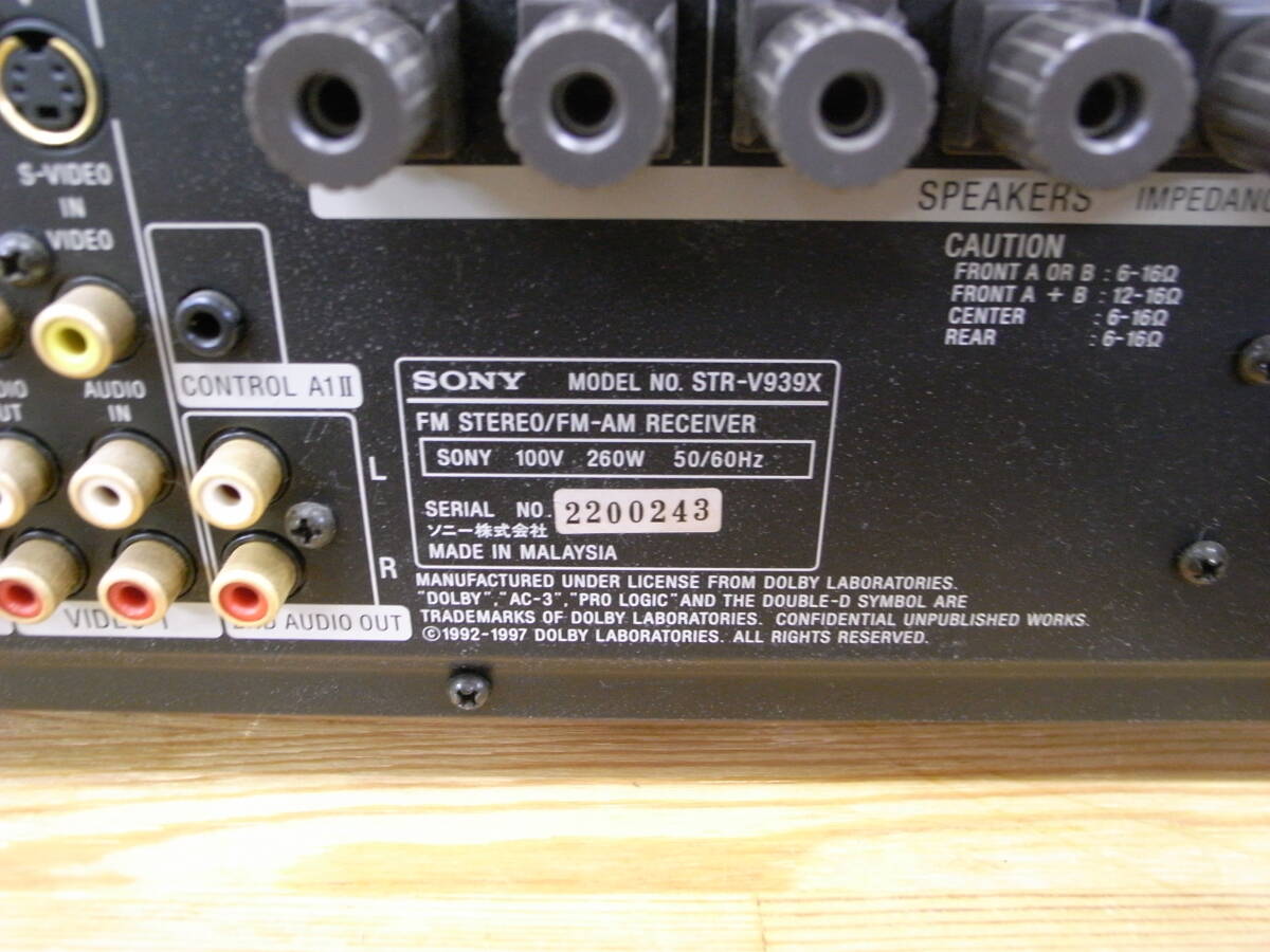 | SONY STR-V939X AVアンプのジャンク品です。 リモコン有りません 本体のみです。 |