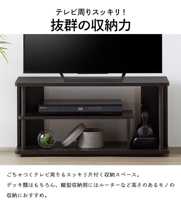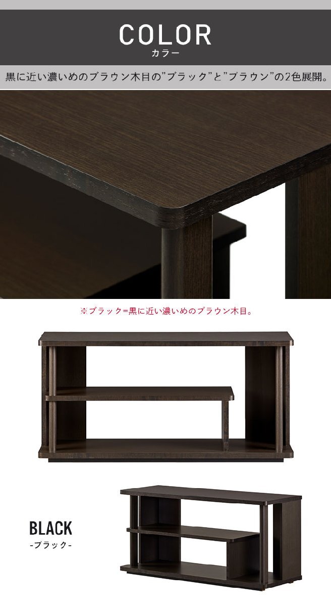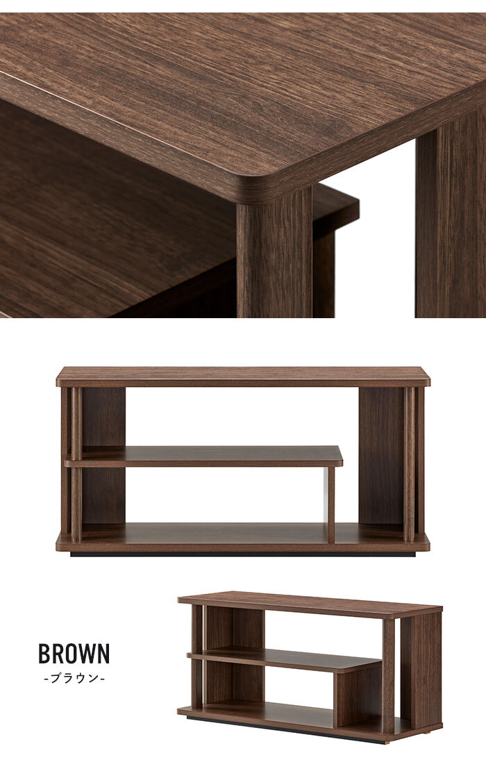 | 奥行を薄くしたシンプルなテレビ台で、お部屋を広く使いたい方におすすめです。 ちょっとかわった棚板で縦型機器用のスペースも備えています。 シンプルな中にも丸みを帯びた柱もワンポイント。 ブラックとブラウンの2色展開。 ※ブラックは黒に近い濃いめのブラウン木目です。 |