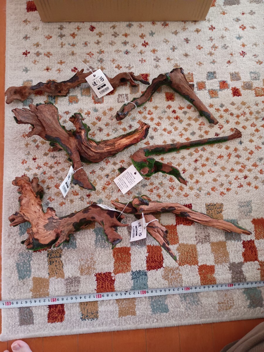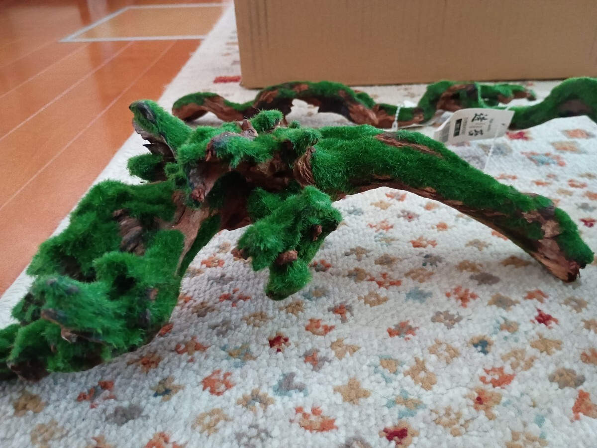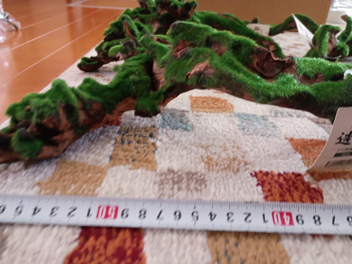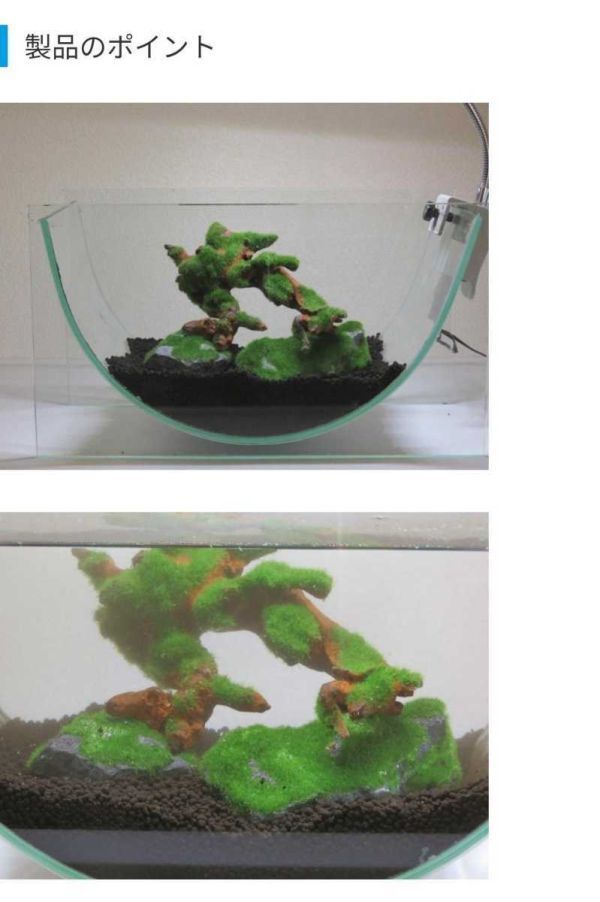 天然流木に造苔を活着させています。造苔のクオリティーが高く本物と見分けが難しいほど精巧な仕上がりに出来ています。水の中に入れればさらにリアリティーが増します。枯れたり溶けたりすることなく長くレイアウトを楽しめます。また、金魚の水槽に入れても金魚につつかれることもありません。テラリウム・ビバリウムにもお勧めです。