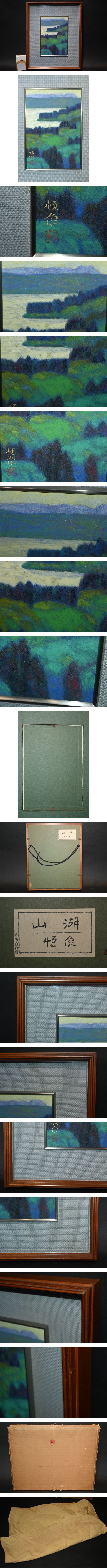 真作■池田恒象■ 日本画『山湖』SM号 額装 堂本印象・三輪晁勢に師事 愛知県生 吉田清泉堂 シール付 日展会友 風景画 絵画 | |||