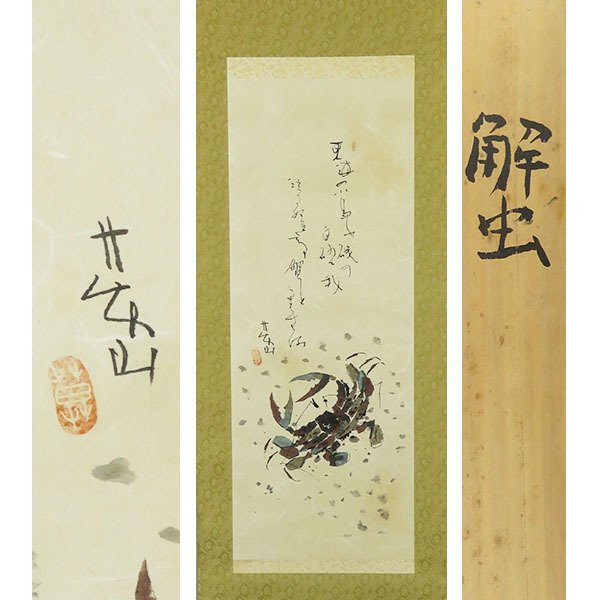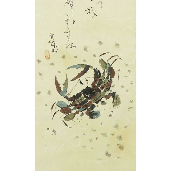 B-4923【真作】榊莫山 肉筆紙本淡彩 蟹画賛 掛軸/書家 三重 師・辻本史邑 日本書芸院審査員 奎星会審査員 書画