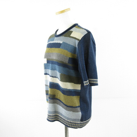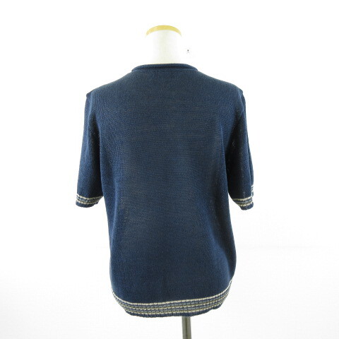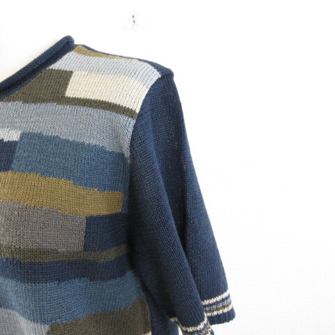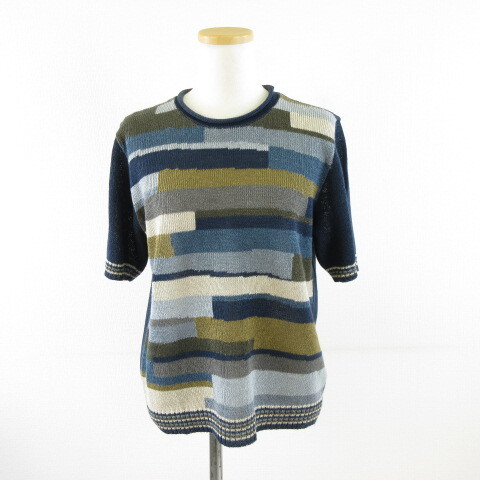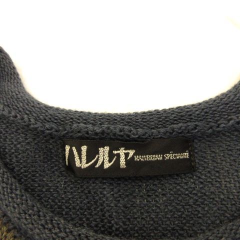 ハレルヤ サマーニット リネン混 半袖 総柄 紺 茶 *A814 レディース