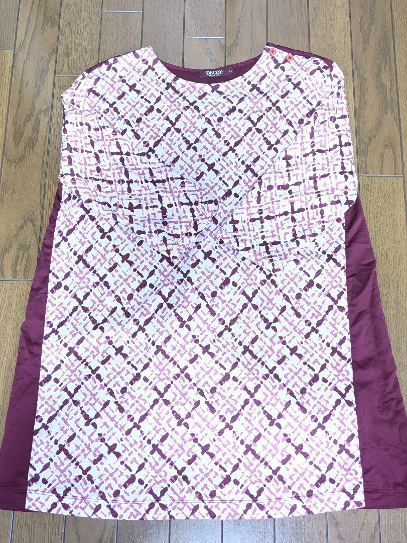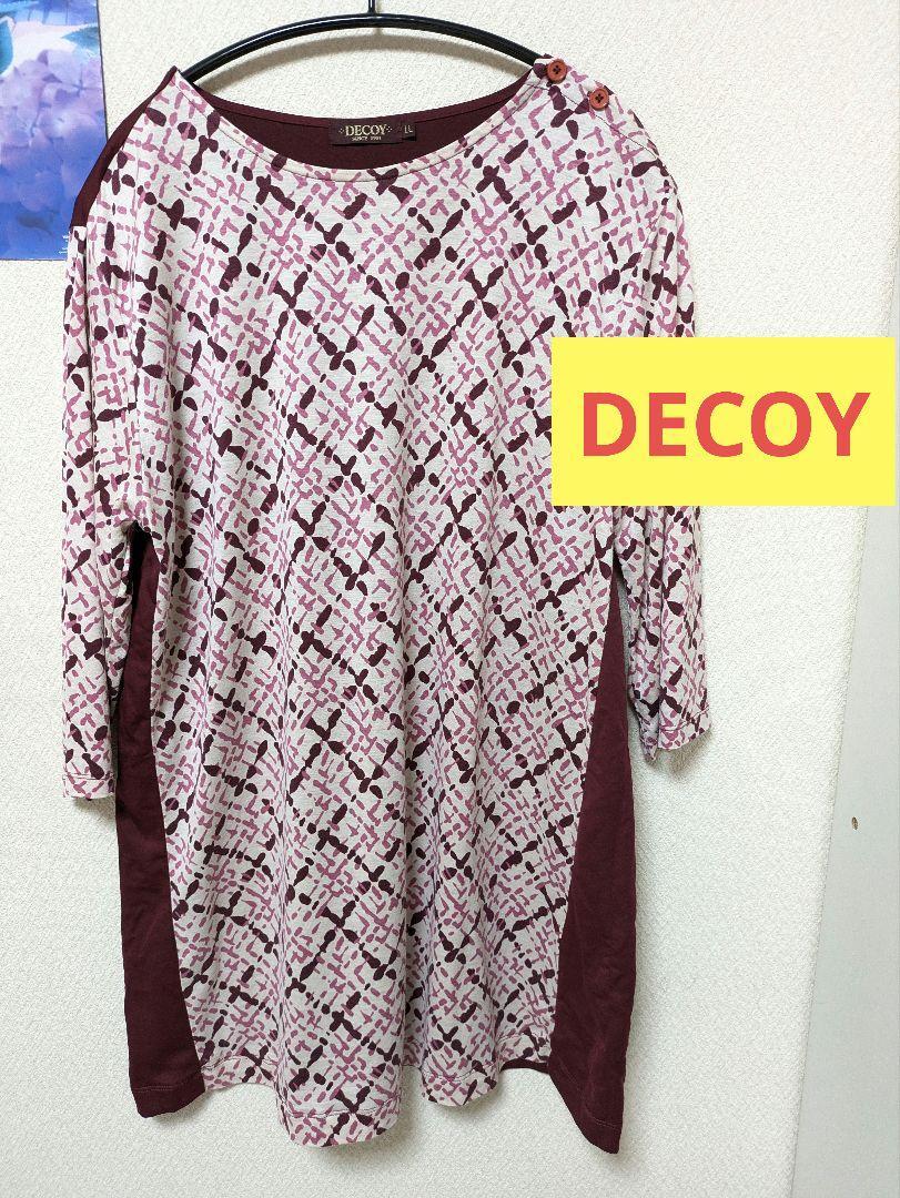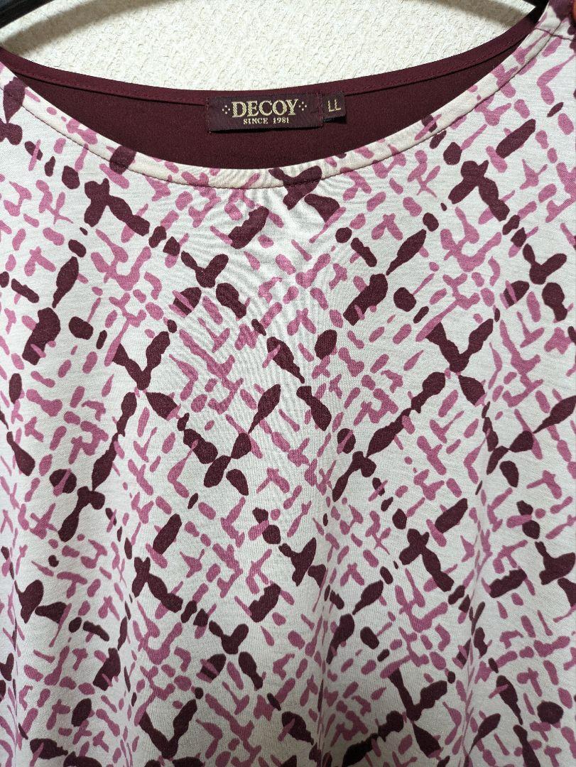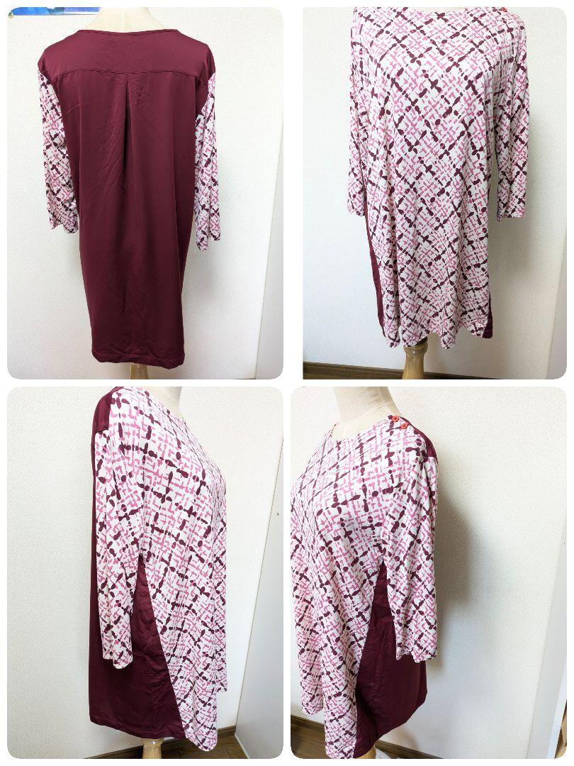 【DECOY】幾何学模様  7分袖 チュニック★ LL★ ピンク バーガンディ★着痩せ  細見え