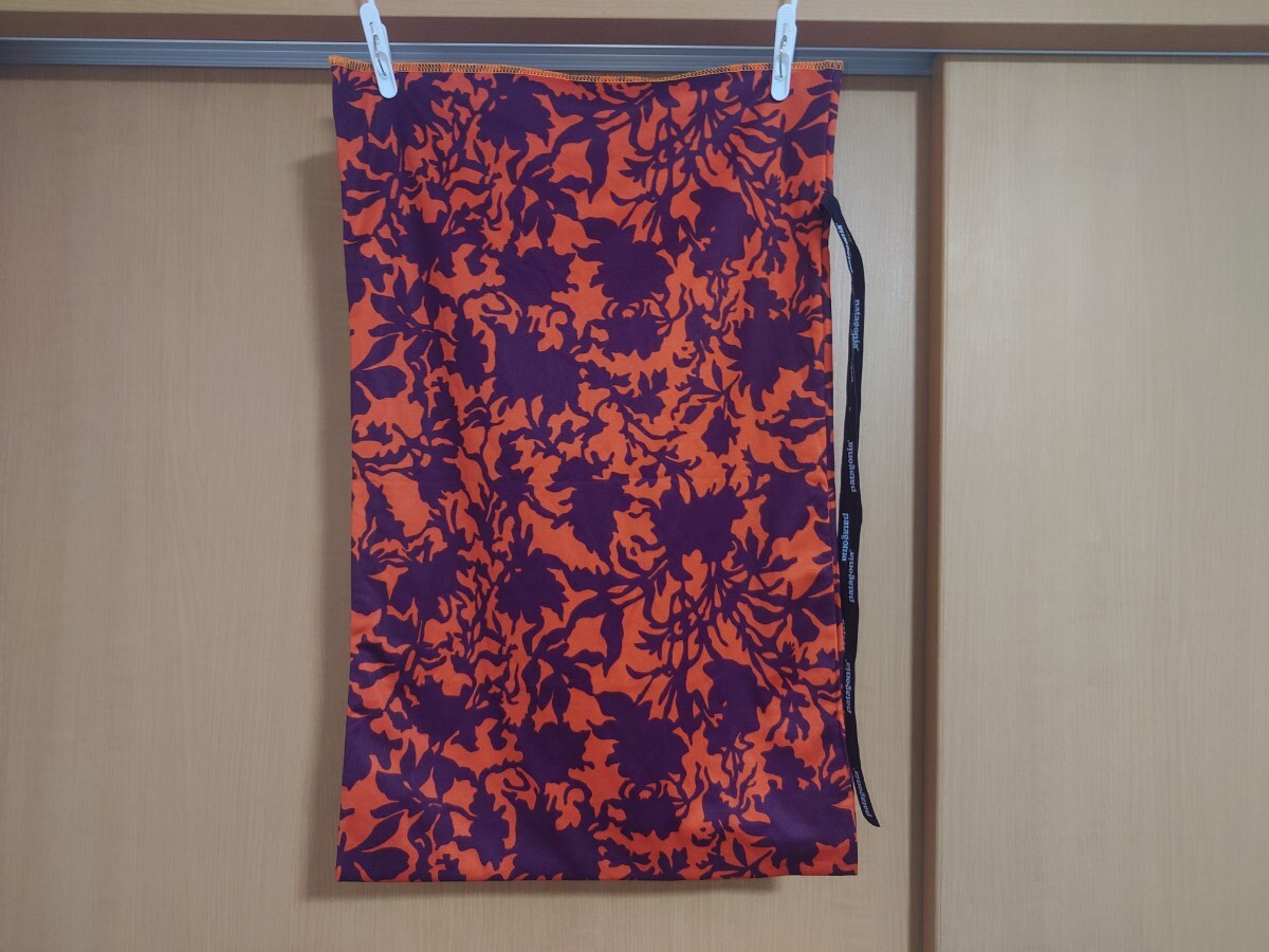サイズは縦約55cmX横約34.5cm、伸縮性の無い1表地と裏地の縫い合せになります。古い物なので画像より御確認下さい。