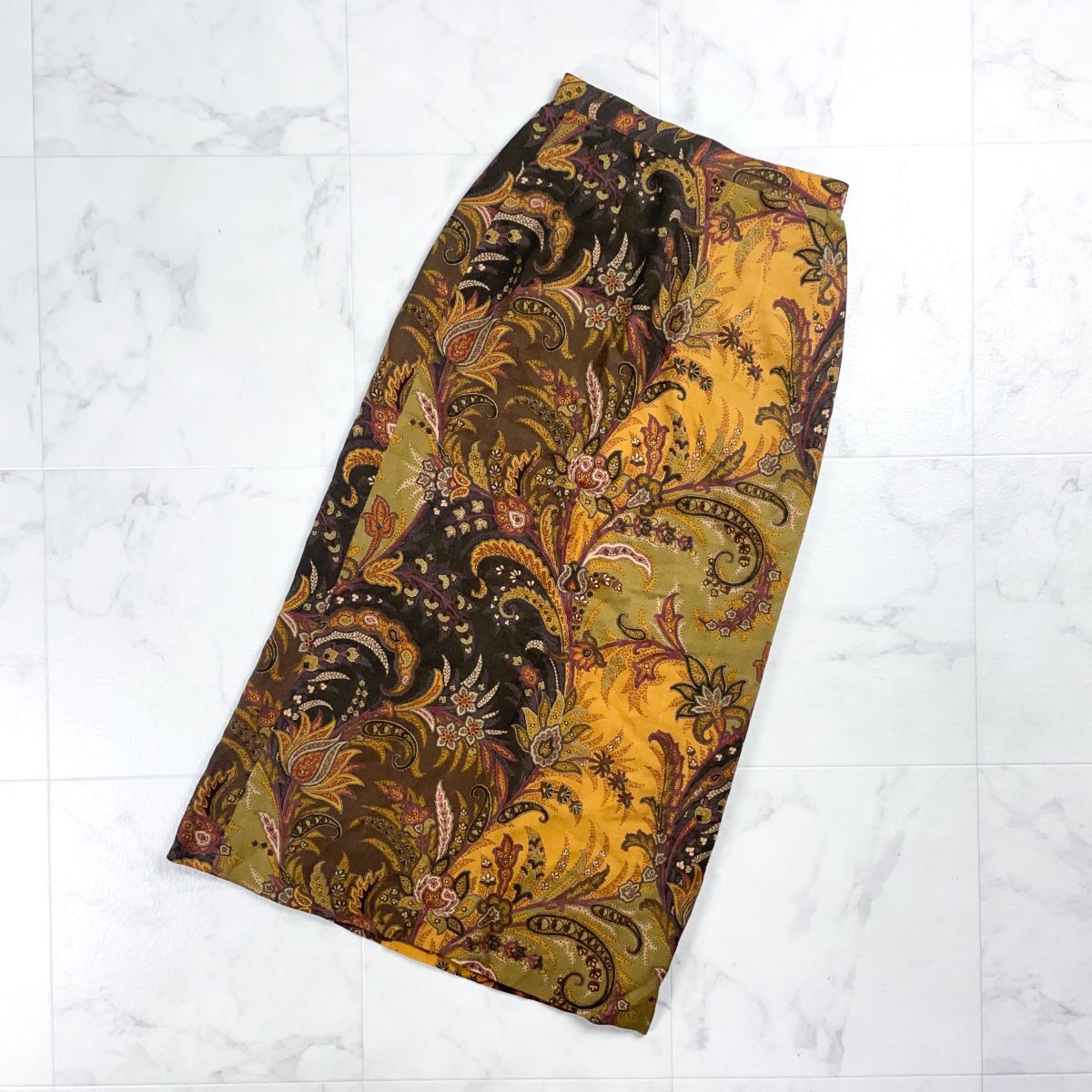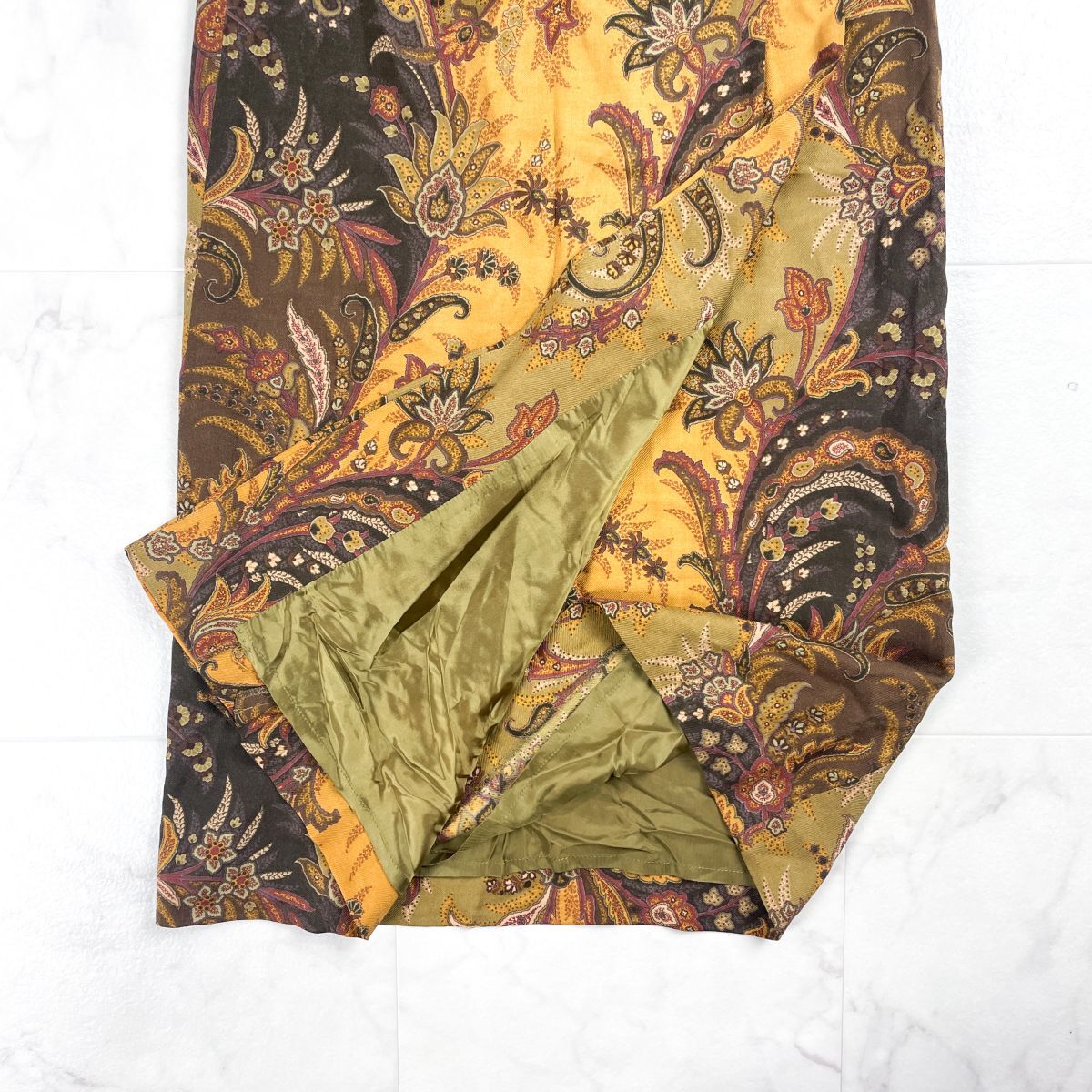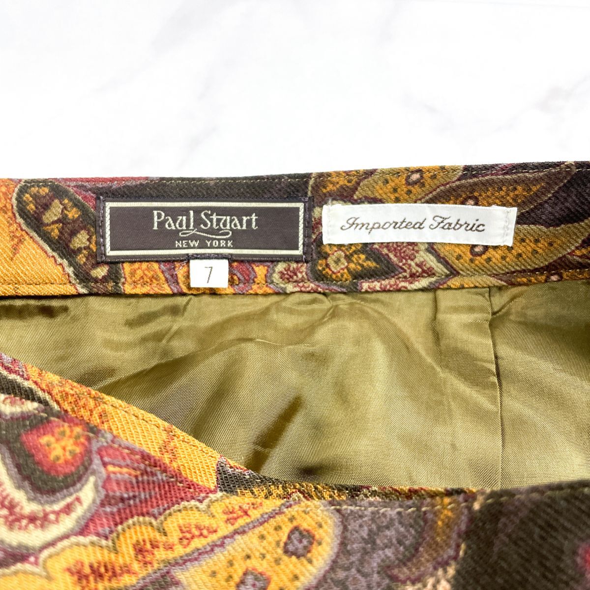 美品 Paul Stuart ポールスチュアート ウール・シルク混 インポートファブリック ラップスカート ミモレ丈 ブラウン系 茶 サイズ7*CD1152