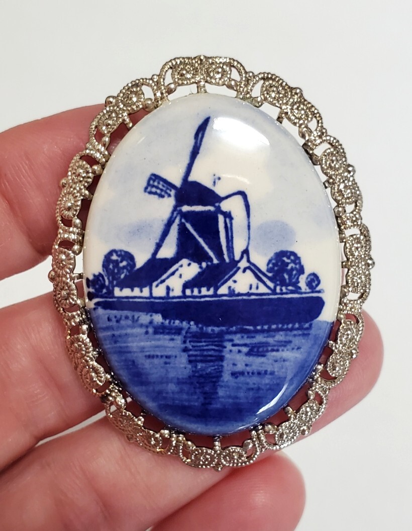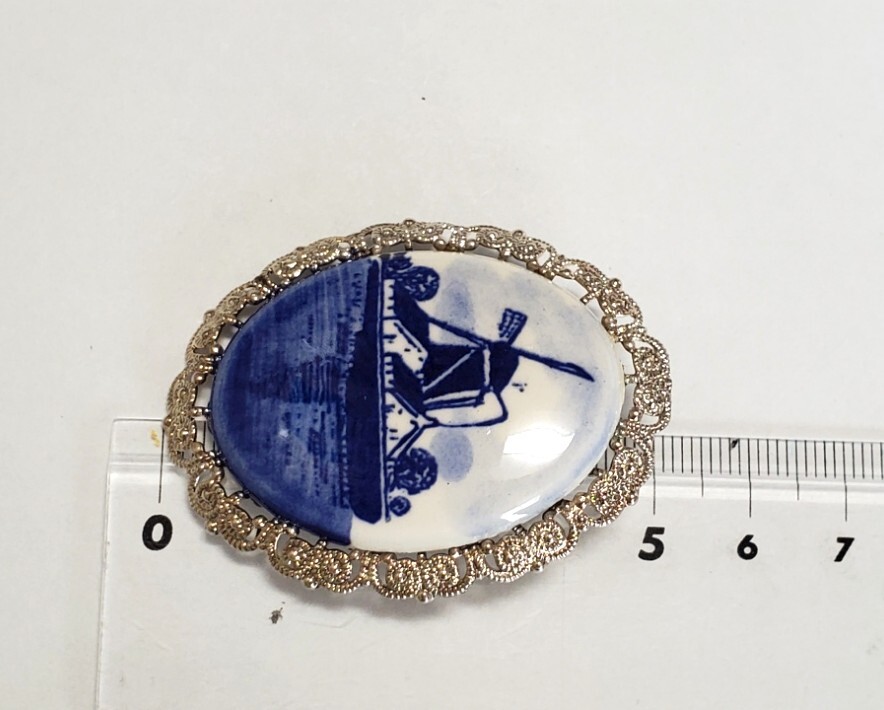 銀メッキ 焼き物 ブローチ レディース 13g 未使用品 保管品
