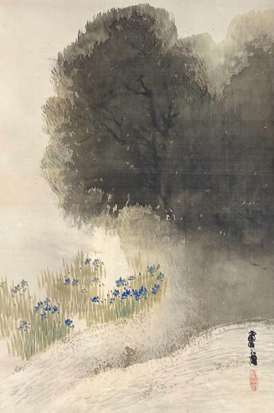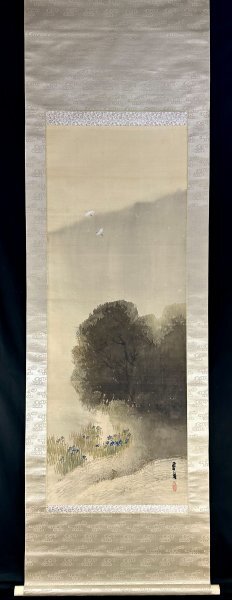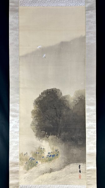 h13H05【真作】村上鳳湖 山水図 掛軸 絹本 山水 明治 昭和期の画家 松本楓湖 川合玉堂に師事 愛媛の人 合箱