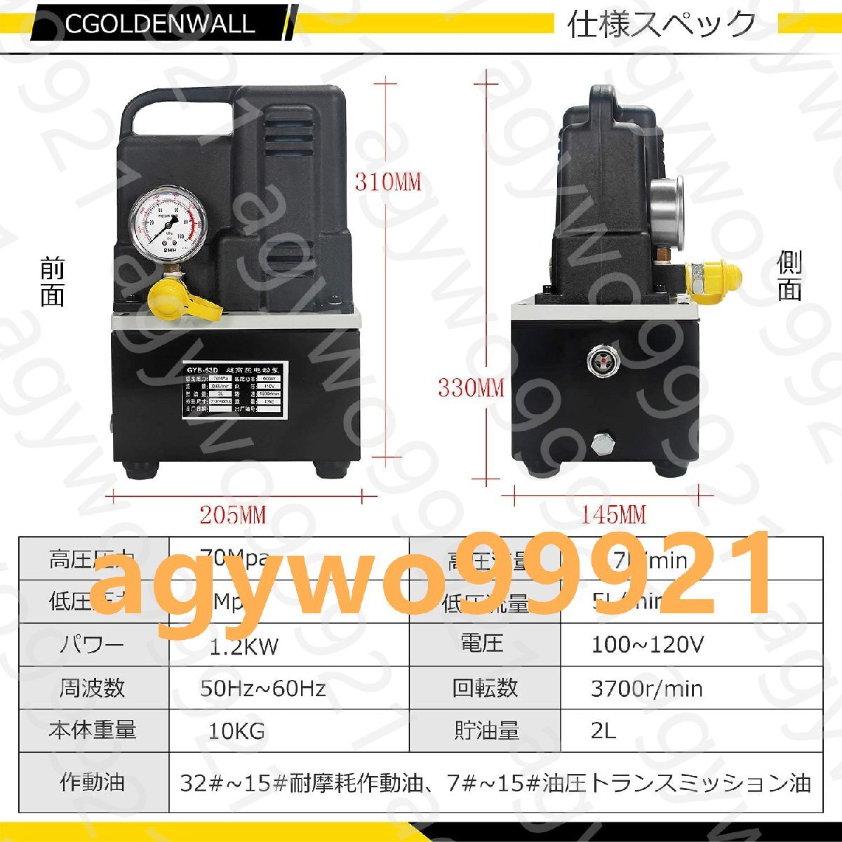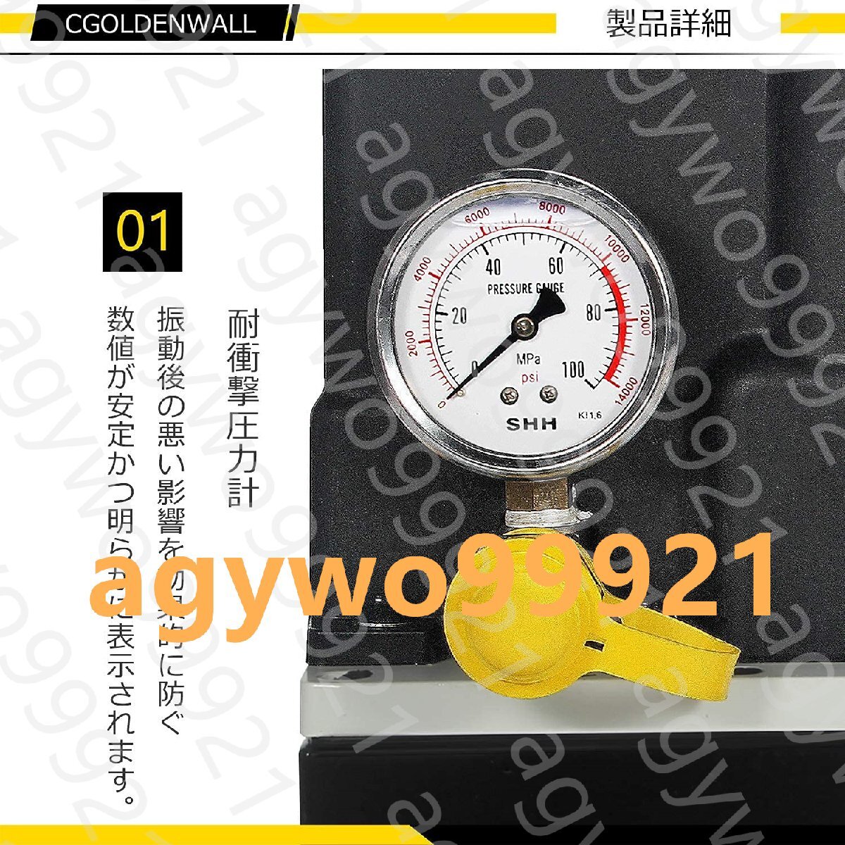 CGOLDENWALL 2L電動油圧ポンプ小型超高圧 防振圧力計付き (QQ-700電動ポンプ)