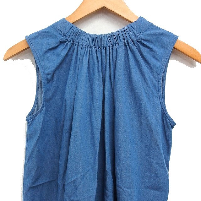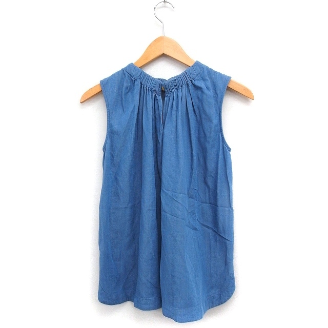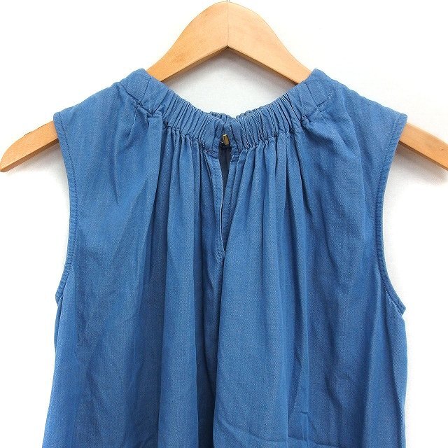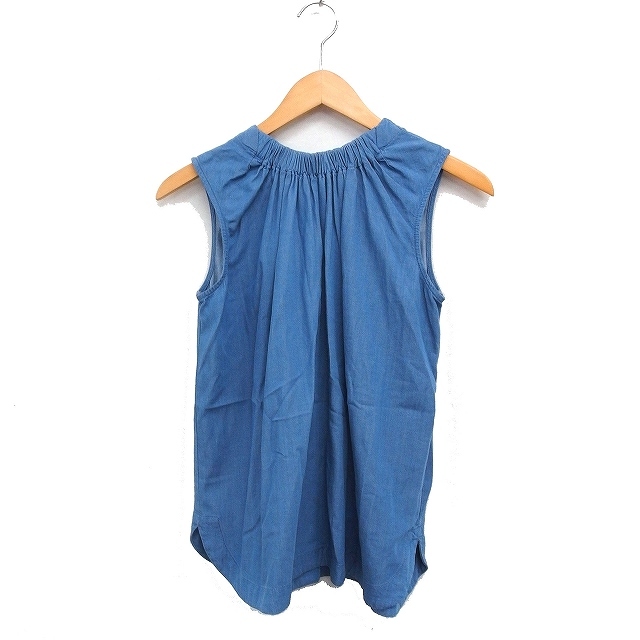 ナノユニバース nano universe ギャザー ブラウス ノースリーブ 無地 綿混 M ブルー 青 /FT17 レディース