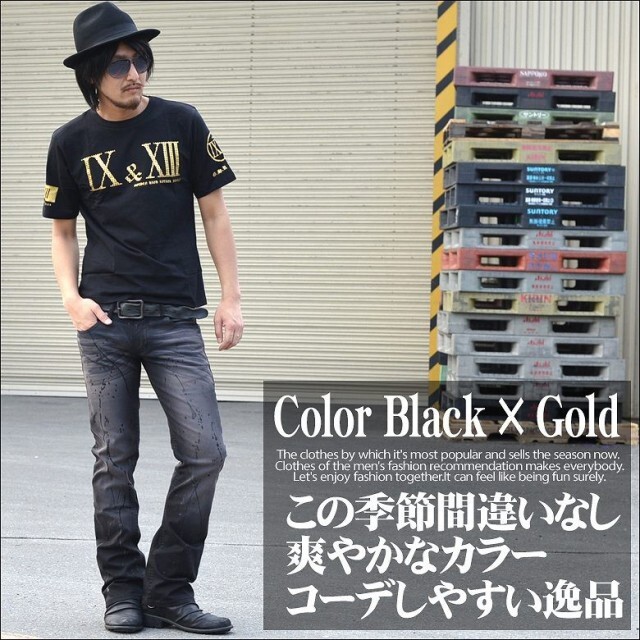 【G.H.R NINE&THIRTEEN】バックロゴデザインプリント 半袖Tシャツ オラオラ 70727 新品 黒金 L