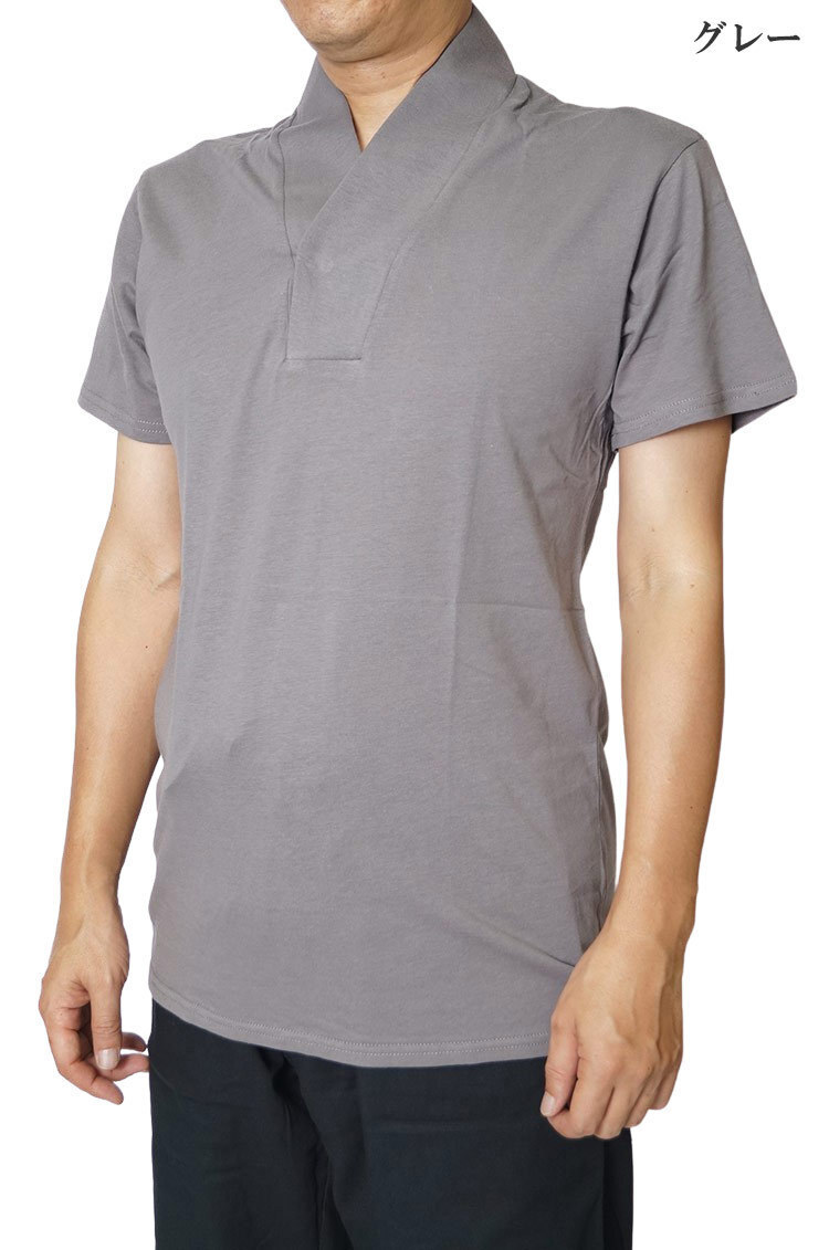 【ひめか】肌着襦袢 メンズ V襟付き Tシャツ 半袖 襟元ボタンホック付き 綿100% 9632050 グレーL