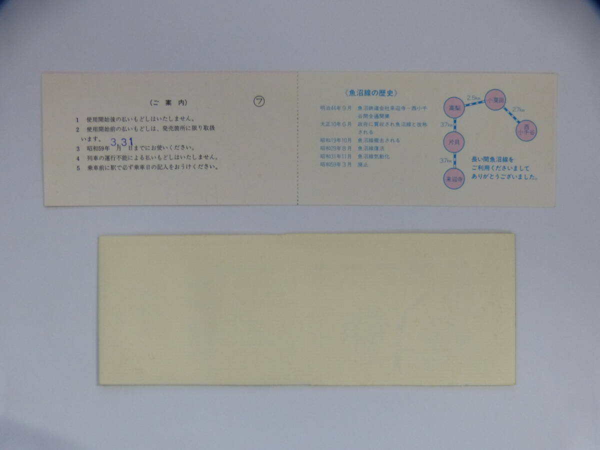 さようなら魚沼線 乗車券(300円)とさようなら魚沼線の入場券 国鉄 1984.3.10 新潟鉄道管理局