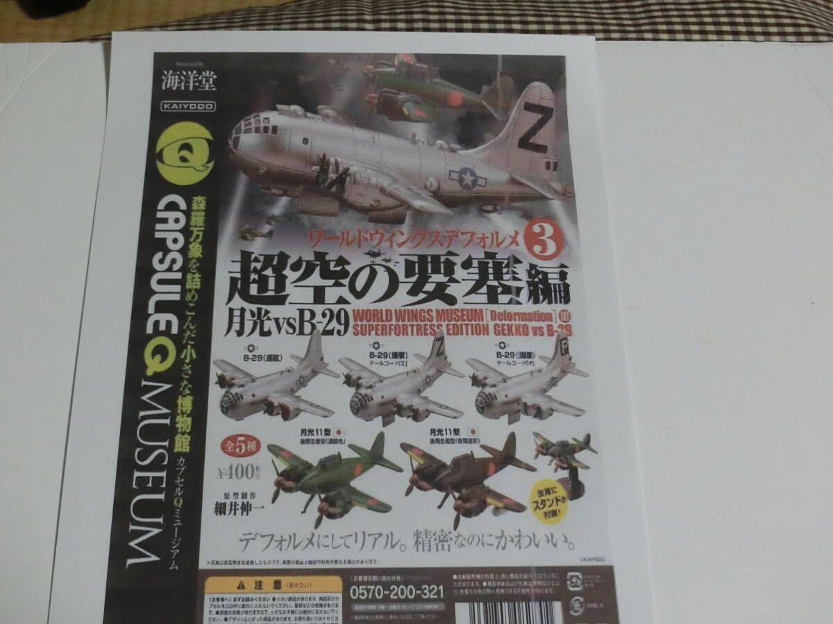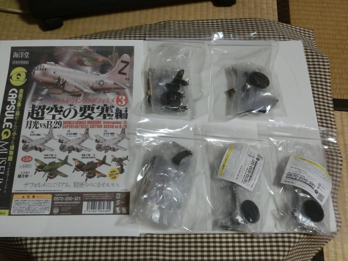ワールドウイングスデフォルメ Vol.3「超空の要塞編」5機セット ①月光 後期型(濃緑色)、②月光 後期型(夜間迷彩)、③B-29(巡航)、④B-29(爆撃)テールマーク「Z」、⑤B-29(爆撃)テールマーク「P」落札後はノークレーム・ノーリターンで御願いします。発送は定形外規格外郵便もしくはゆうパックで対応させて戴きます。