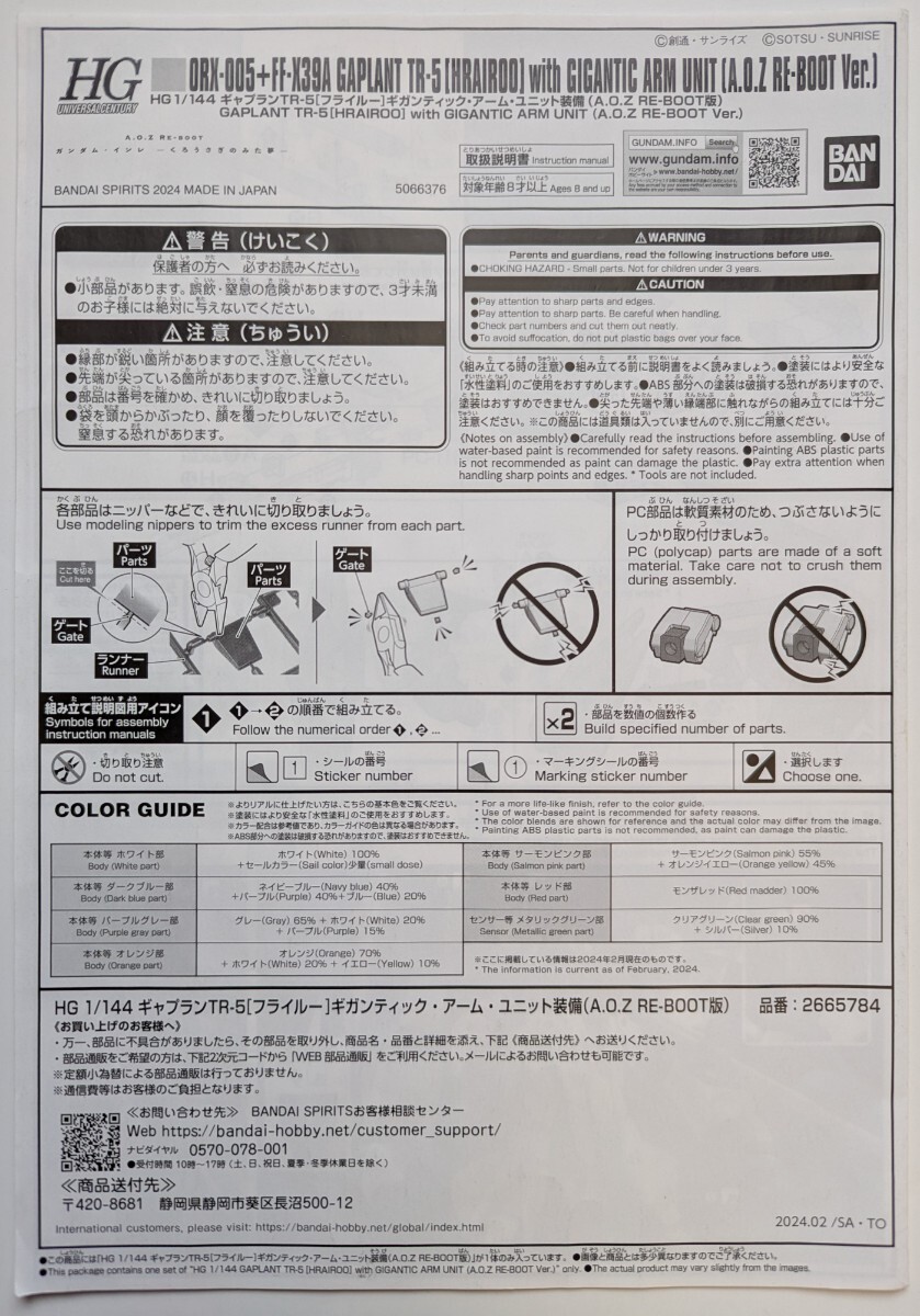 「説明書のみ HG 1/144 ORX-005 ギャプランTR-5[フライルー] ギガンティック・アーム・ユニット装備(A.O.Z RE-BOOT版) 説明書のみ」中古品になります。画像のものがすべてです。状態は並品だと思いますが、多少のキズや使用感はあります。(切り抜きはありません。)ご理解頂ける方のみご入札お願いします。あくまでも中古品ですので神経質な方は入札をご遠慮ください。ビニール袋に入れてから封筒に入れて発送します。発送方法は、発送方法は、定形外郵便、レターパックライト、レターパックプラスの中からお選びください。(※代金引換は対応しておりません。)オークション終了後、5日以内に入金できる方のみご入札お願いします。連絡の遅い方、評価の悪い方、新規の方は入札をご遠慮ください。落札後はノークレーム、ノーリターンでお願いします。