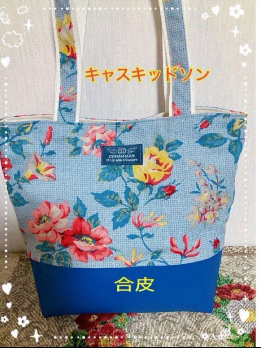 私が、一目惚れしたらキャスキッドソン生地を使って制作したハンドメイドのトートバッグです。