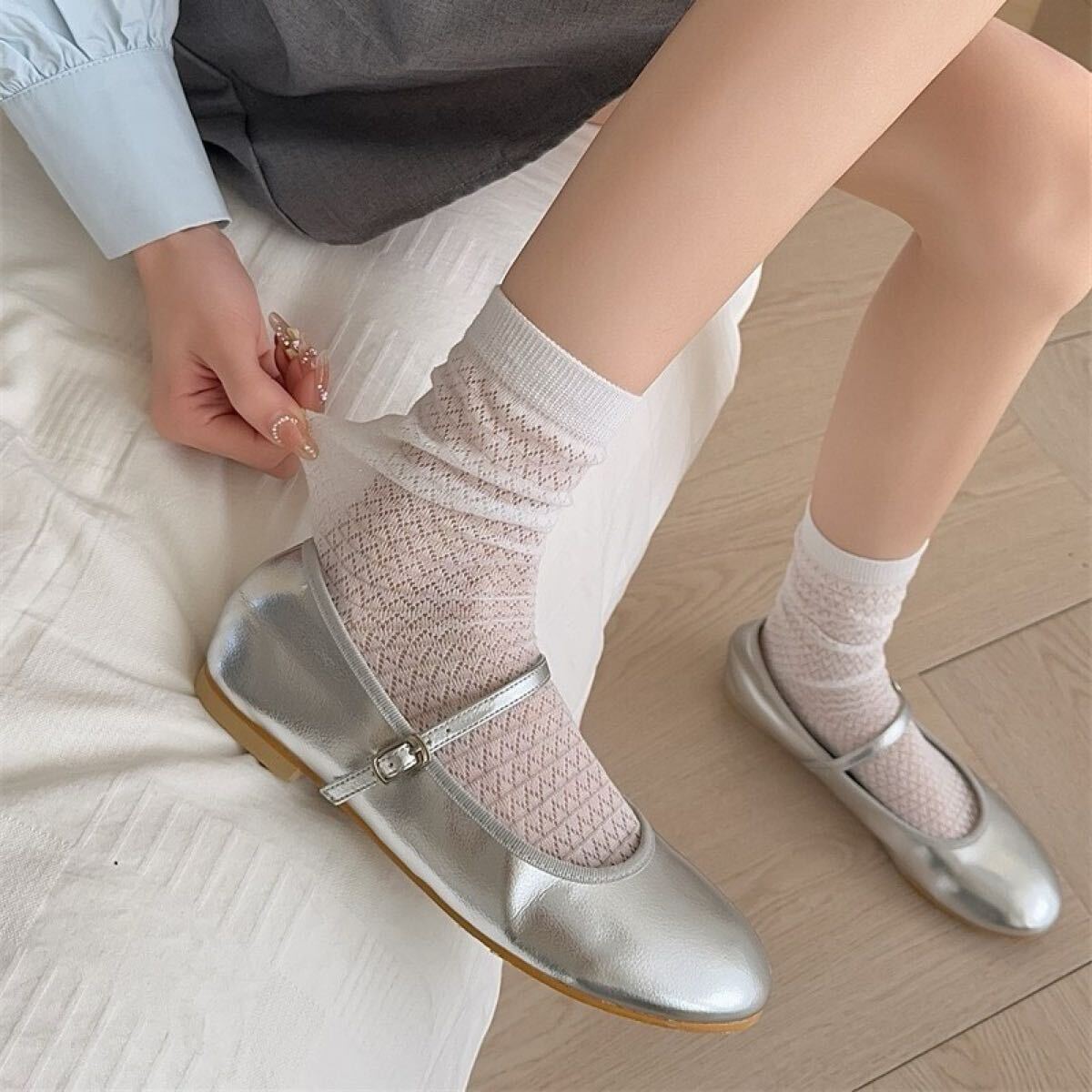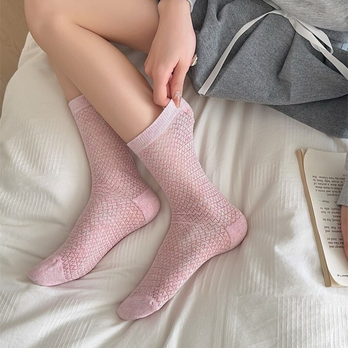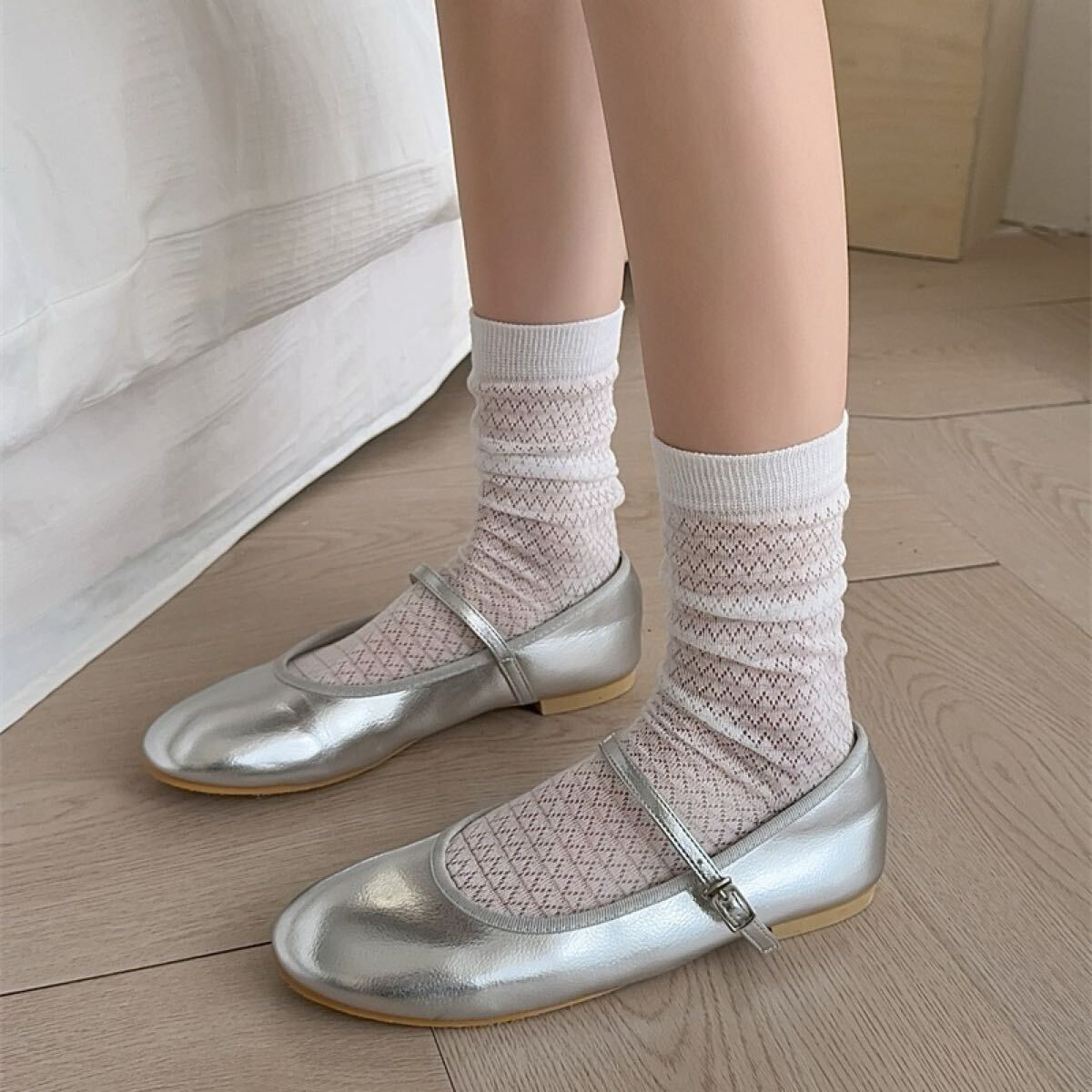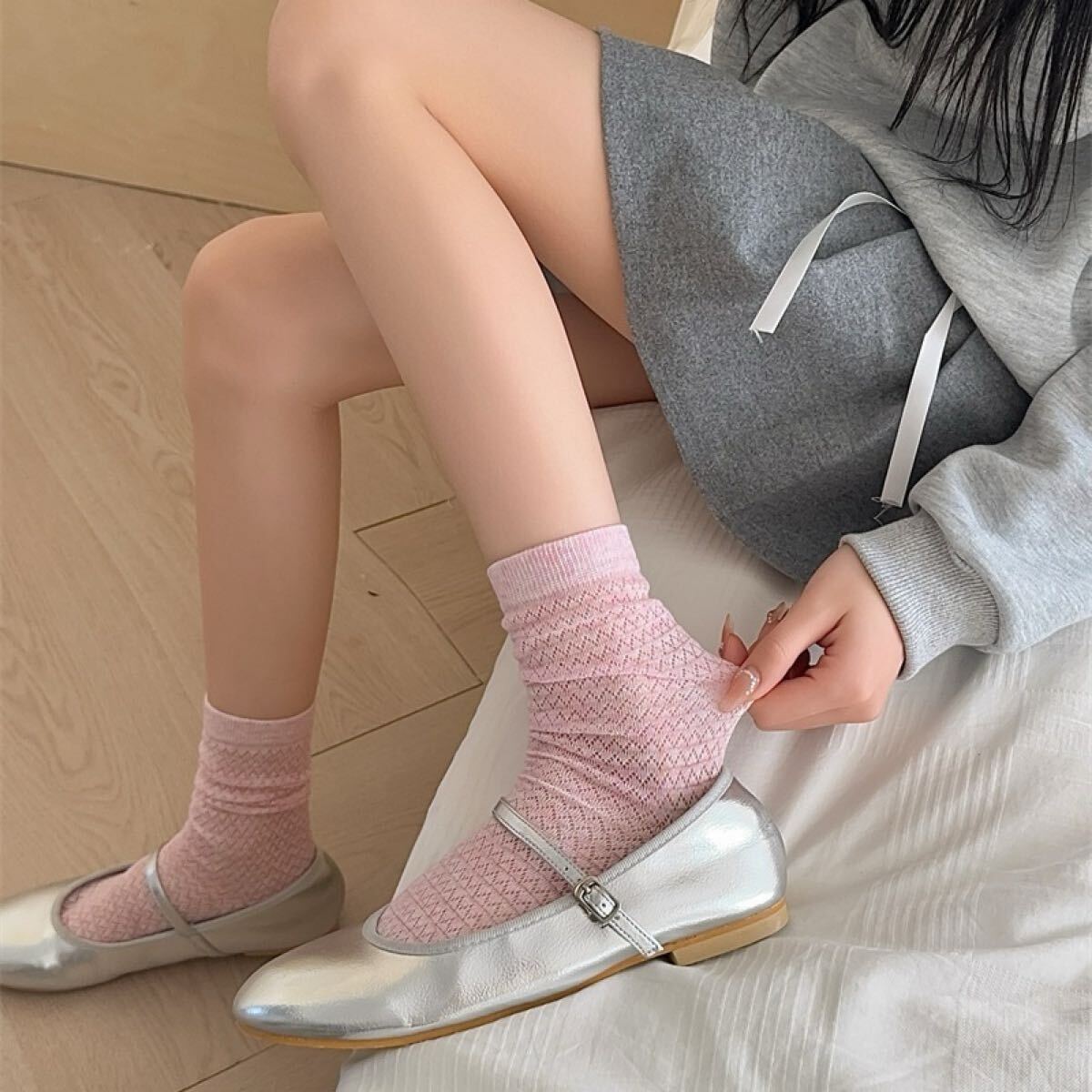 爽やかなカラーにほどよい透け感がある涼しげなシースルー靴下です。