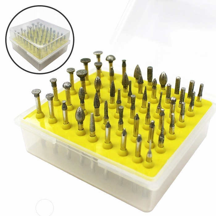 50本 セット ダイヤモンドバー ルーター 切削 ダイヤモンド ビット 研磨 仕上げ用 丸軸 3.0mm 3mm シャンク 平型 凸型 複数型