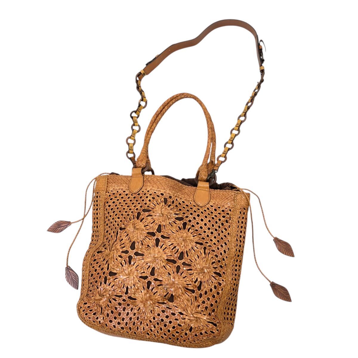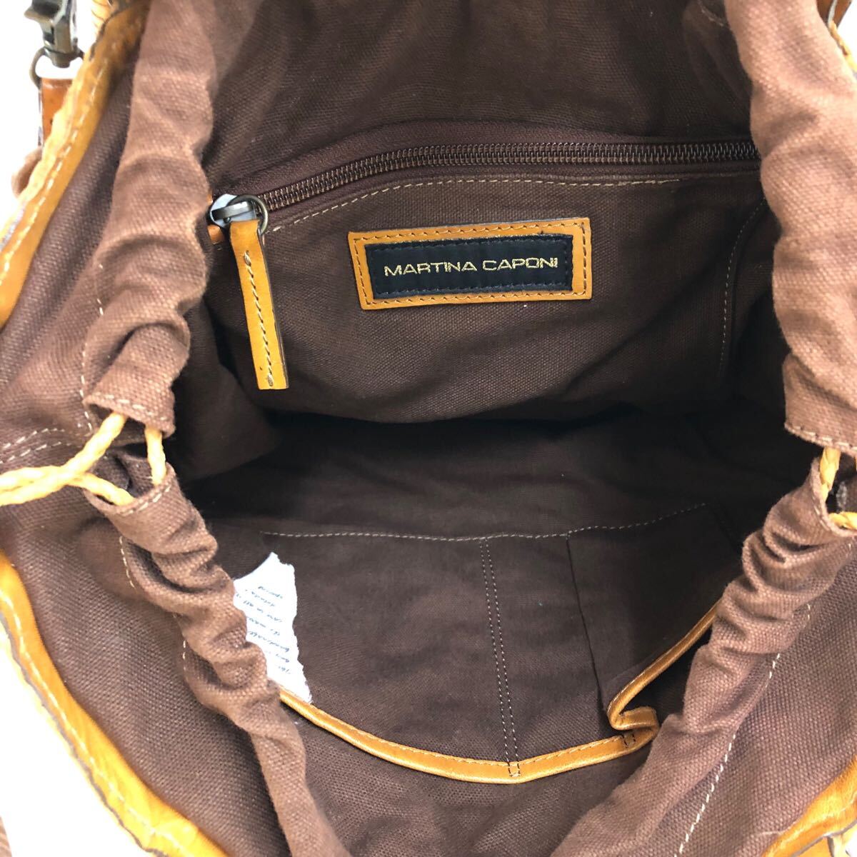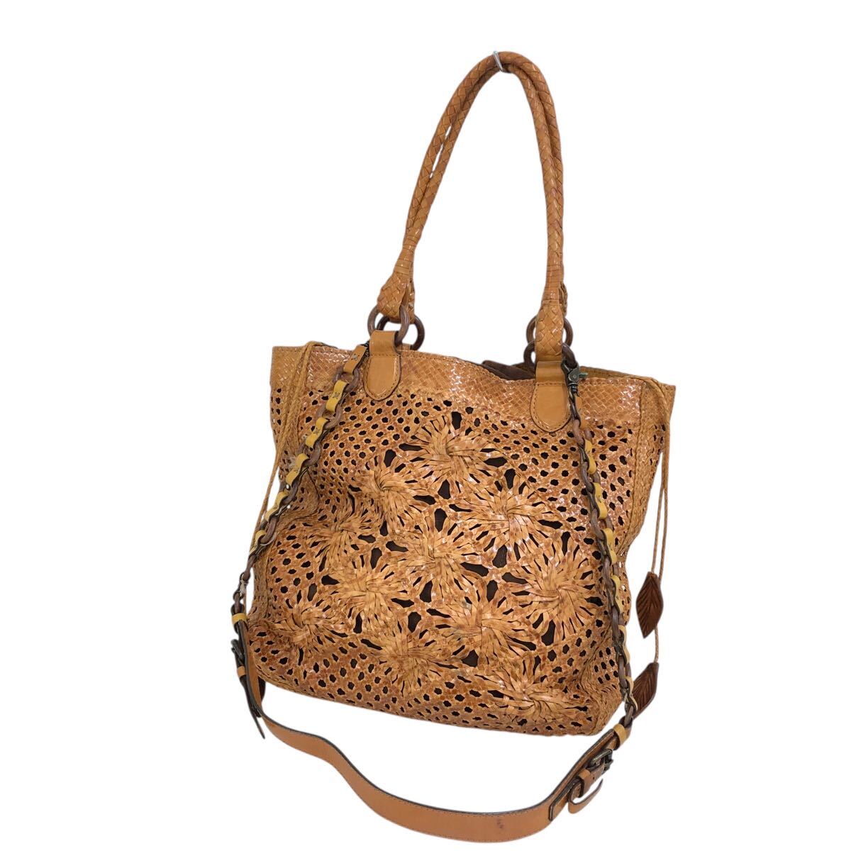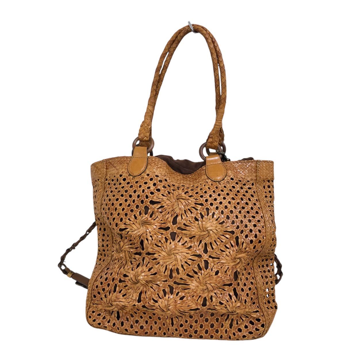 h056-38 MARTINA CAPONI マルティナカポーニ レザー 編み込み デザイン ハンド トート ショルダー バッグ 茶系 肩掛け 鞄 カバン bag 良品