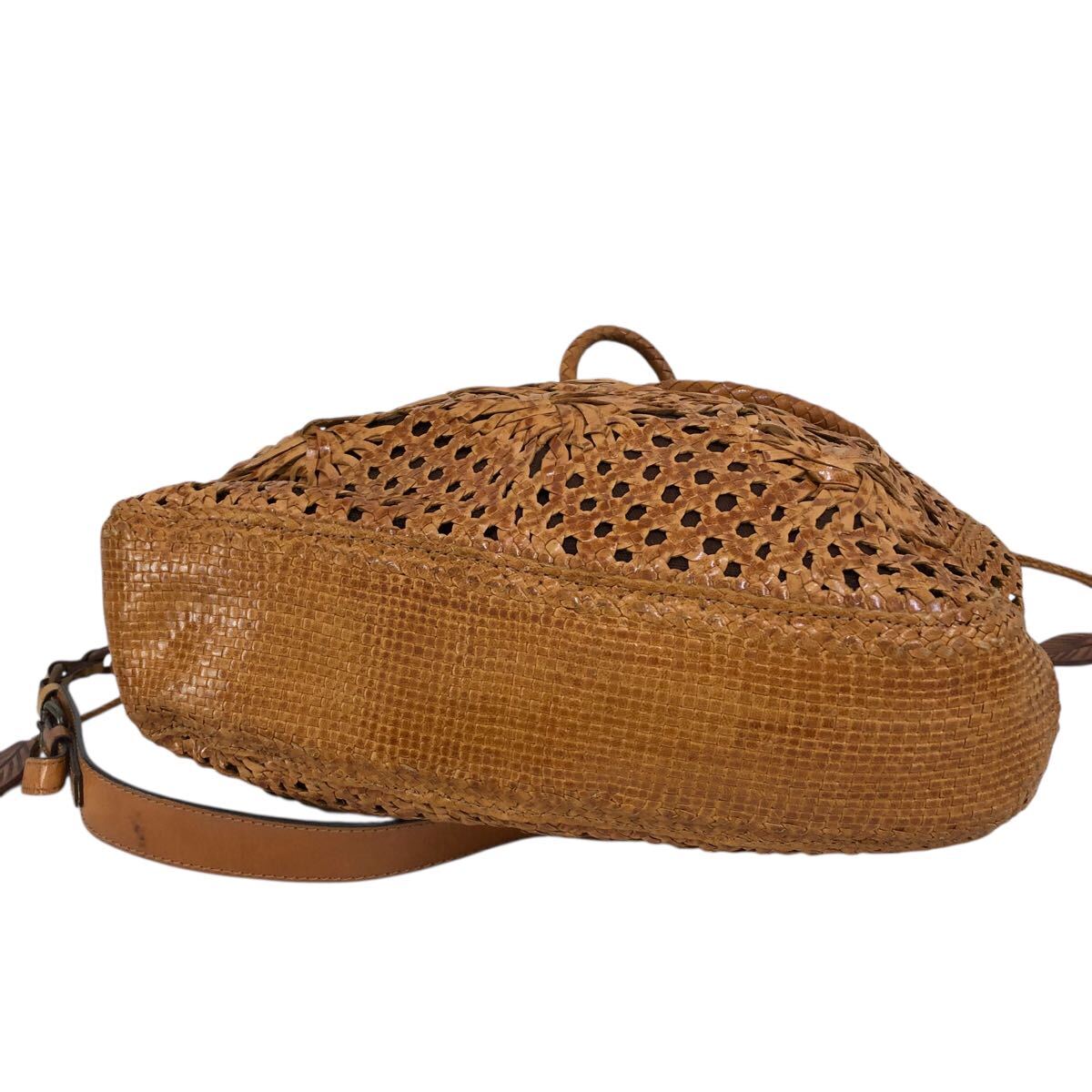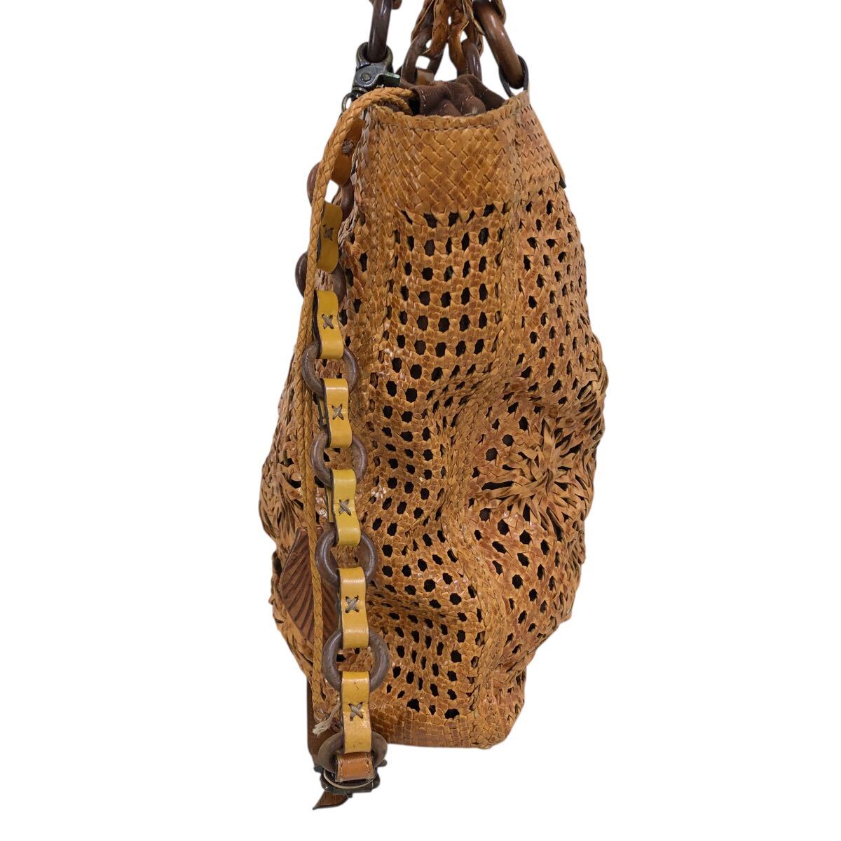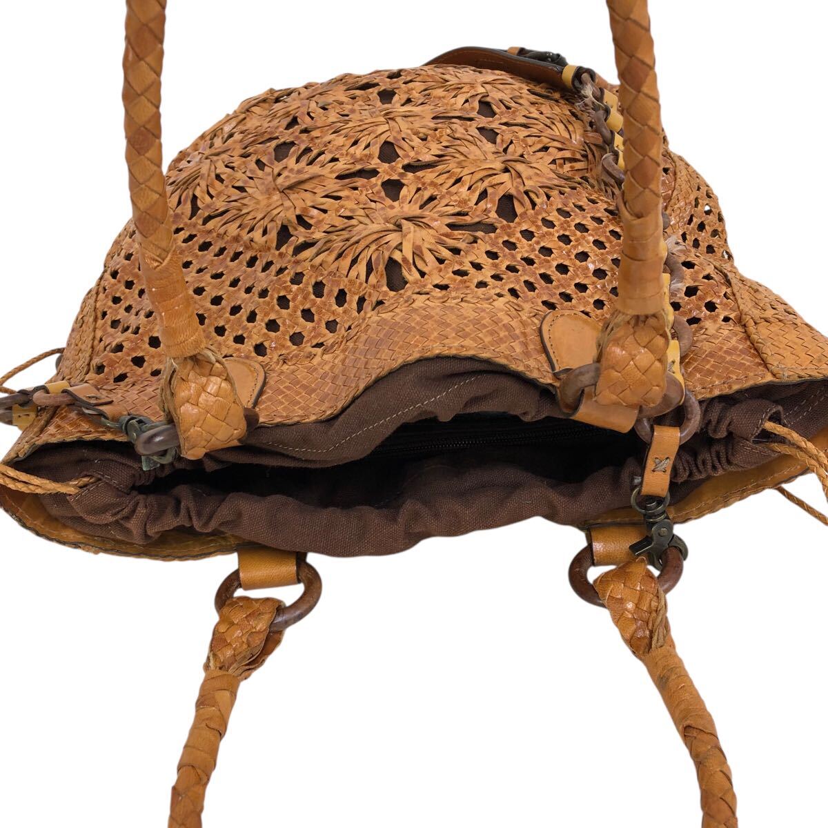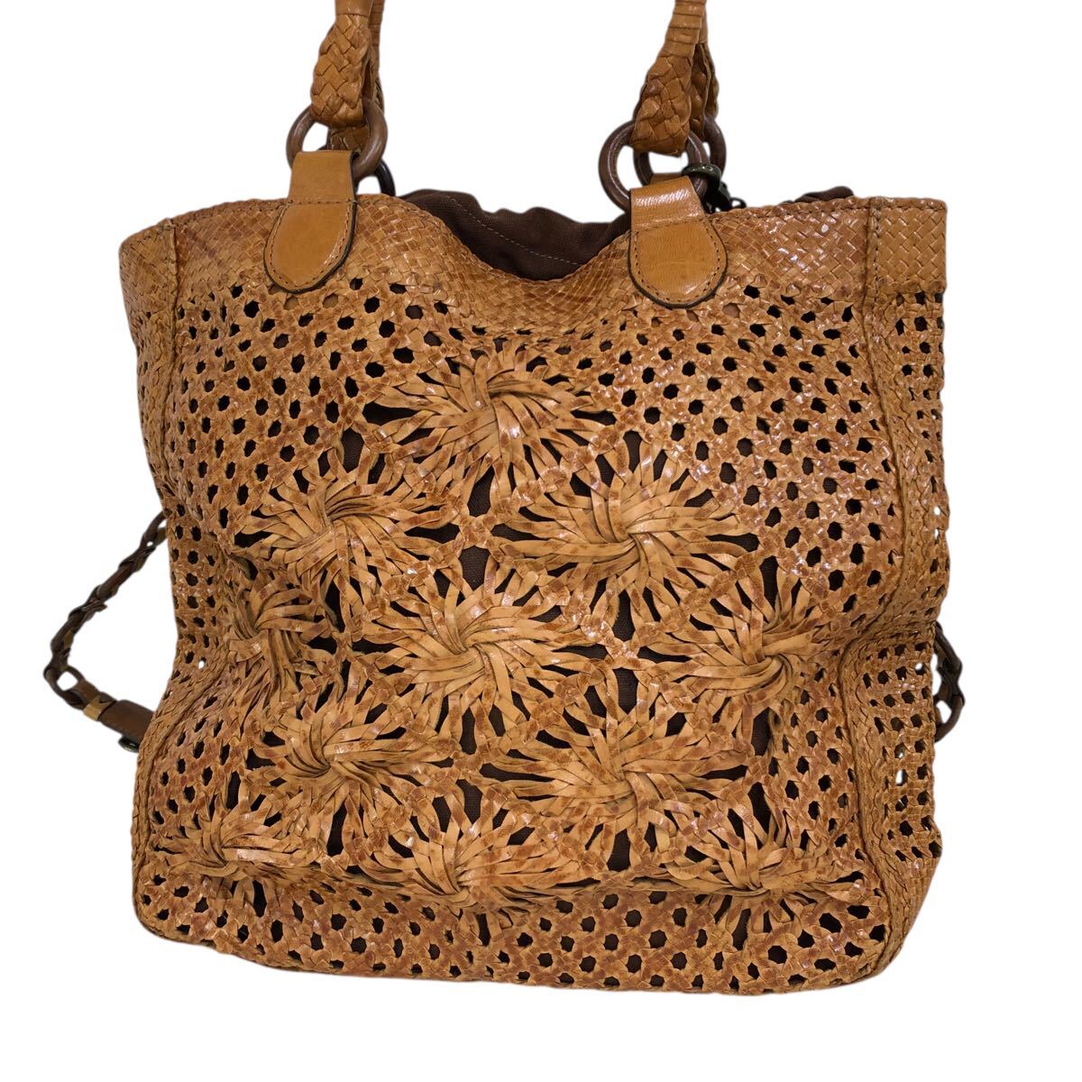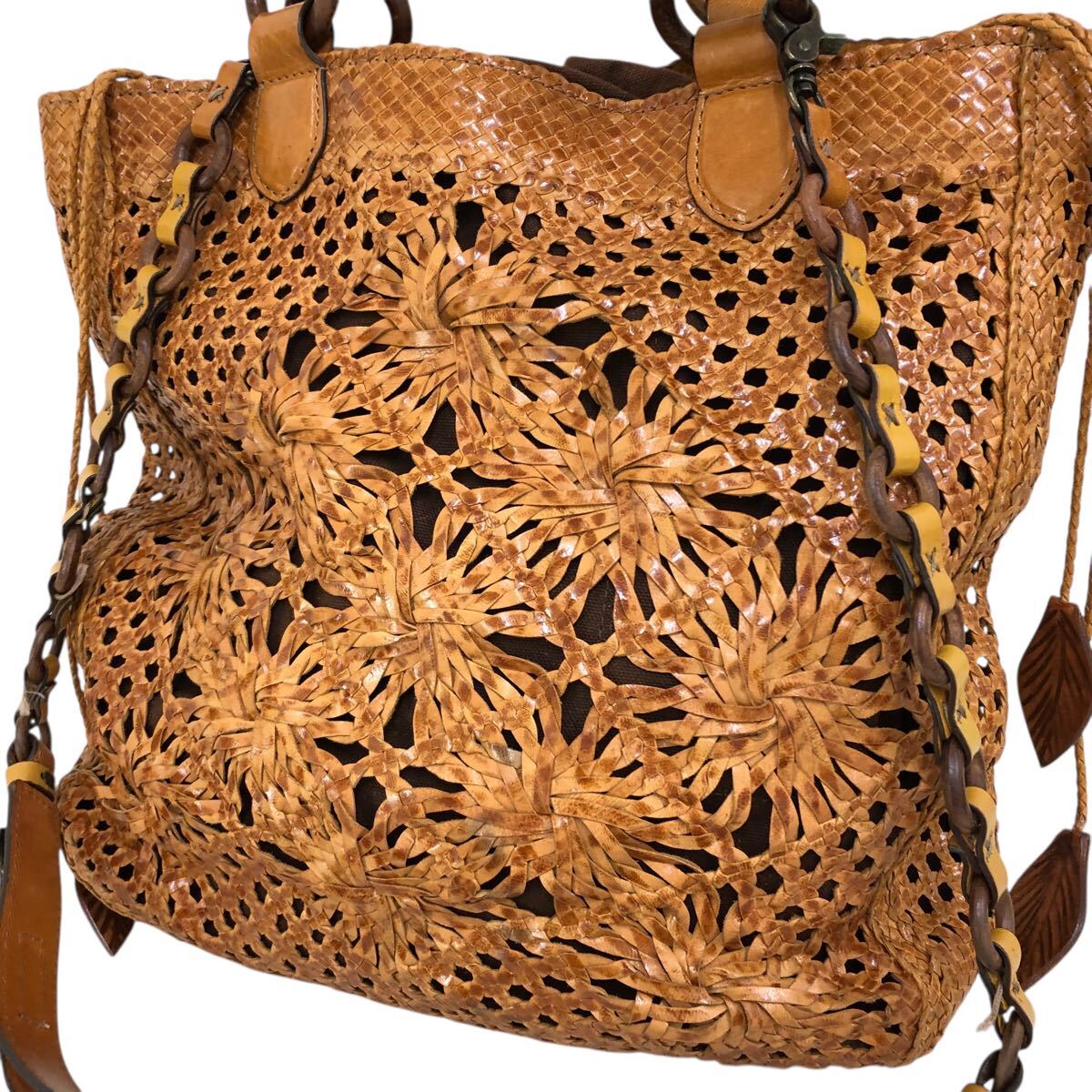 h056-38 MARTINA CAPONI マルティナカポーニ レザー 編み込み デザイン ハンド トート ショルダー バッグ 茶系 肩掛け 鞄 カバン bag 良品