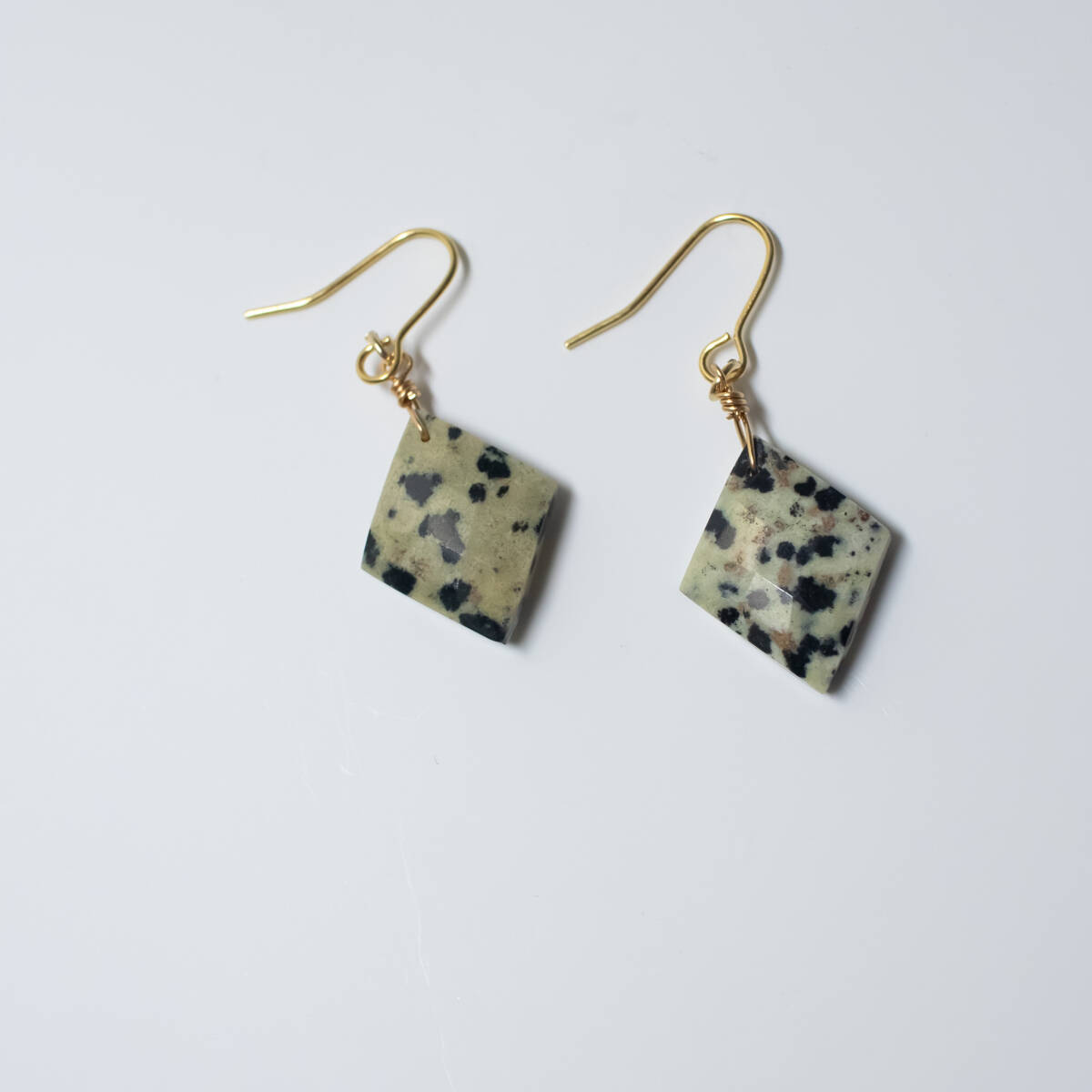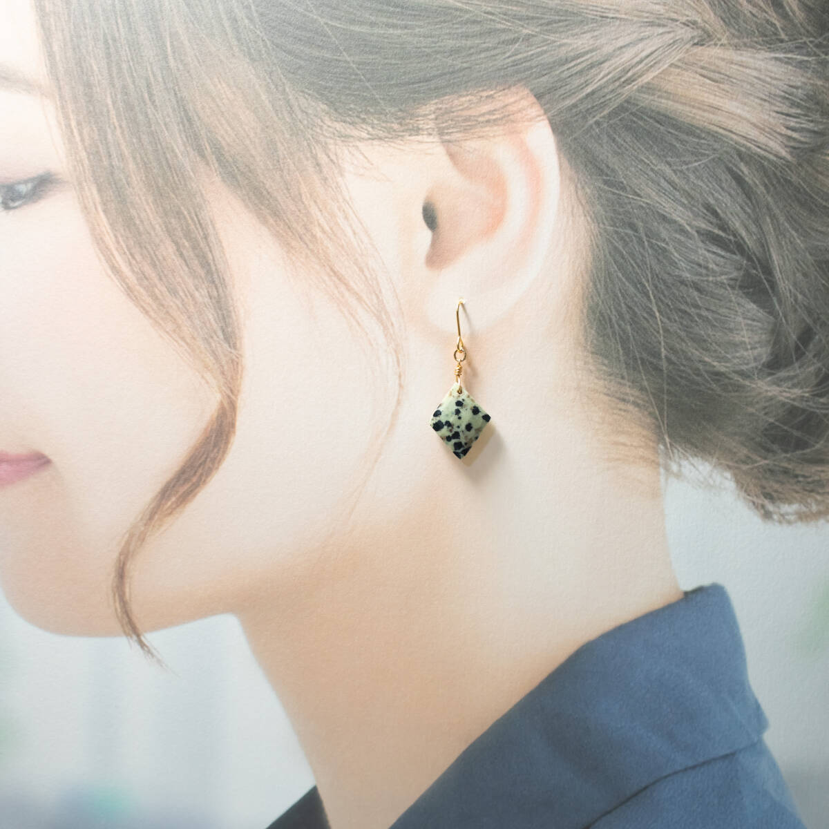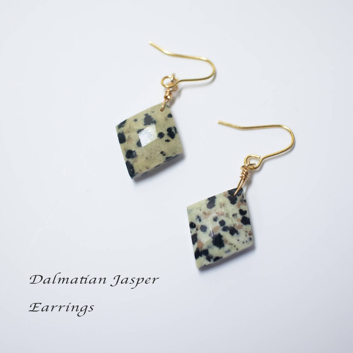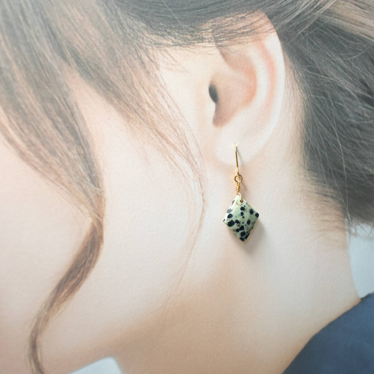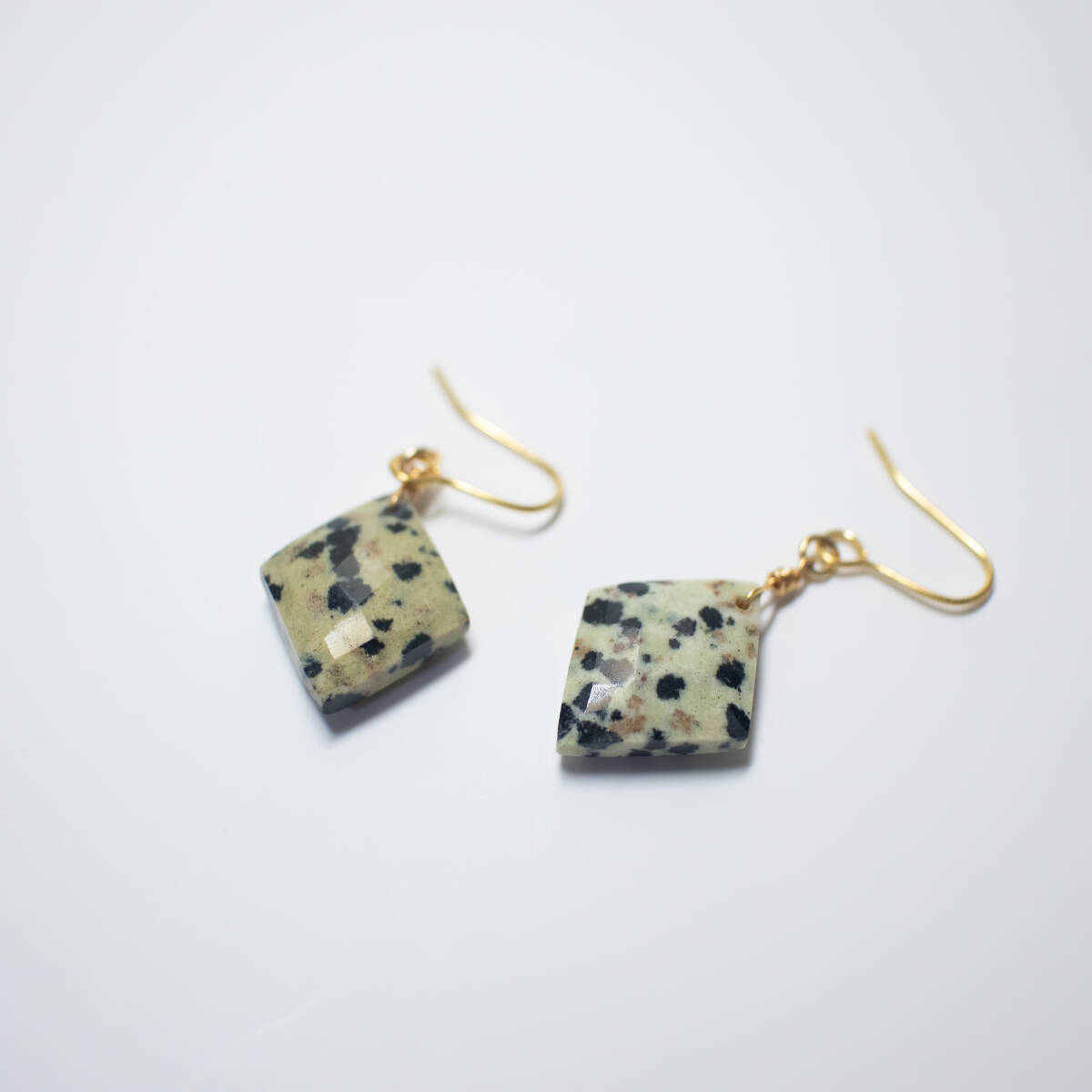 天然石◆ダルメシアンジャスパー◆ダイヤカット ピアス ゴールド 金属アレルギー対応