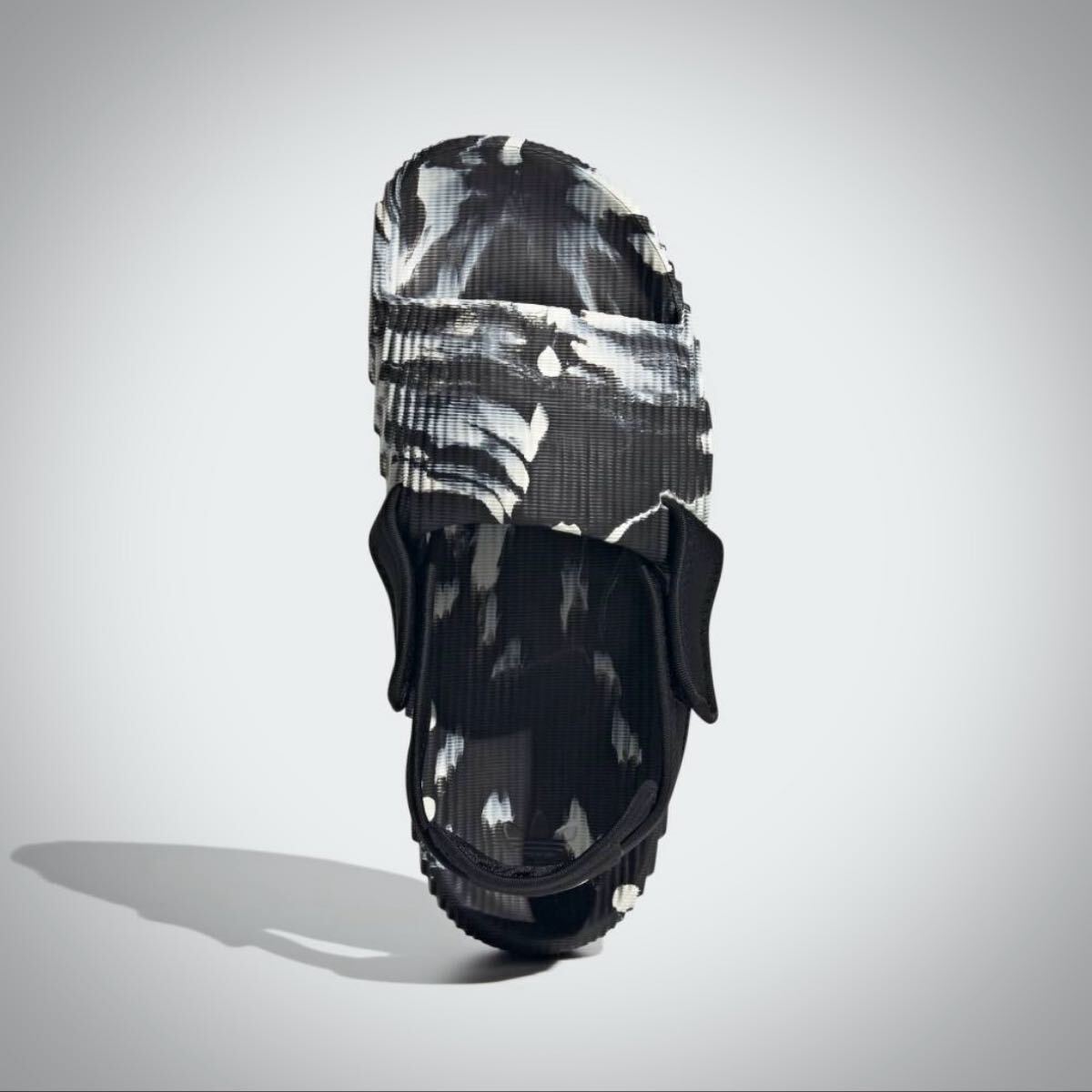 全体のプロポーションを一新した、斬新なデザインが目を引く。従来のスリッパタイプに、長さ調節がしやすいストラップをプラスすることで、脱げにくく歩きやすいサンダルになった。