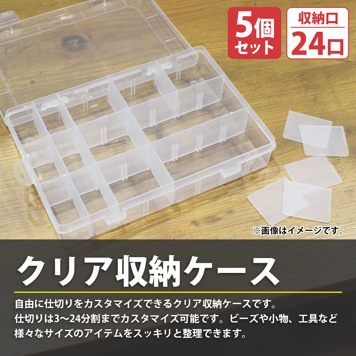 5個セット プラスチック パーツボックス 『横19.5cm 奥13.5cm 高さ3.7cm』 最大24口 仕切り 小物 ネジ ネイル ケース ホビー