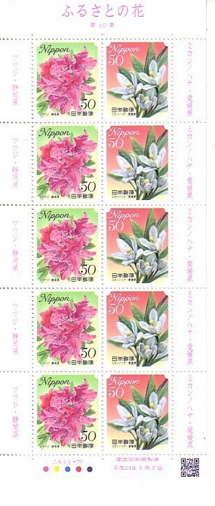 「ふるさとの花シリーズ 第10集」の記念切手です(50円切手X10枚)。送料は普通便110円(郵送 複数落札でも同一料金)になります。